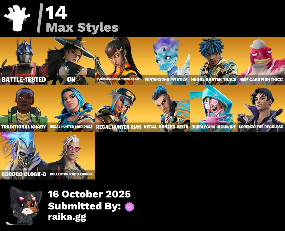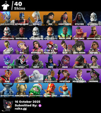 [PC/PSN/XBOX] 40 skins | Renzo the Destroyer | Optimus Prime | Mizuki | Era | Kado Thorne | Kylo Ren | Wolf Pack Trooper | Coruscant Guard | Darth Maul | 700 VB / FN