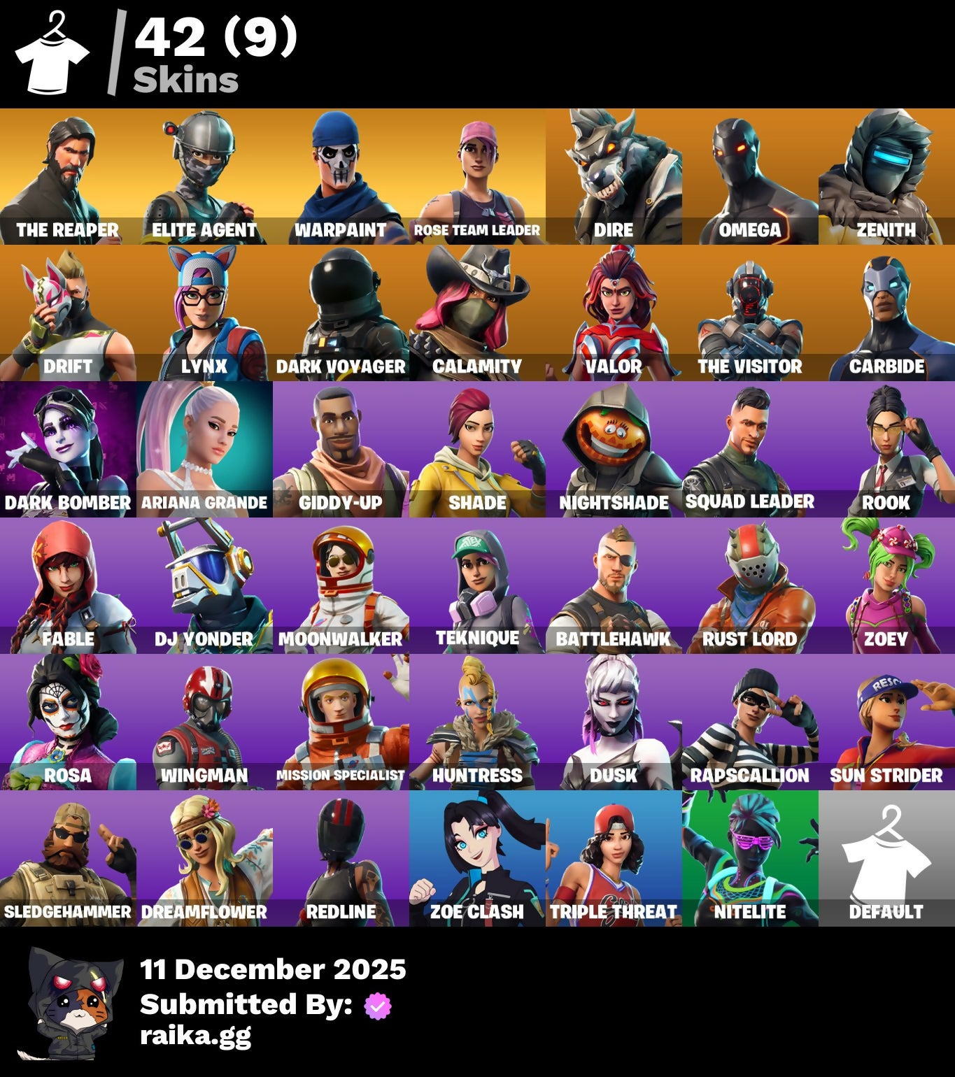 [PC/PSN/XBOX] 42 skins | OG STW | The Reaper | Elite Agent | Dire | Omega | Zenith | Drift | Lynx | Dark Voyager | Calamity | Valor | The Visitor | Carbide | 500 VB