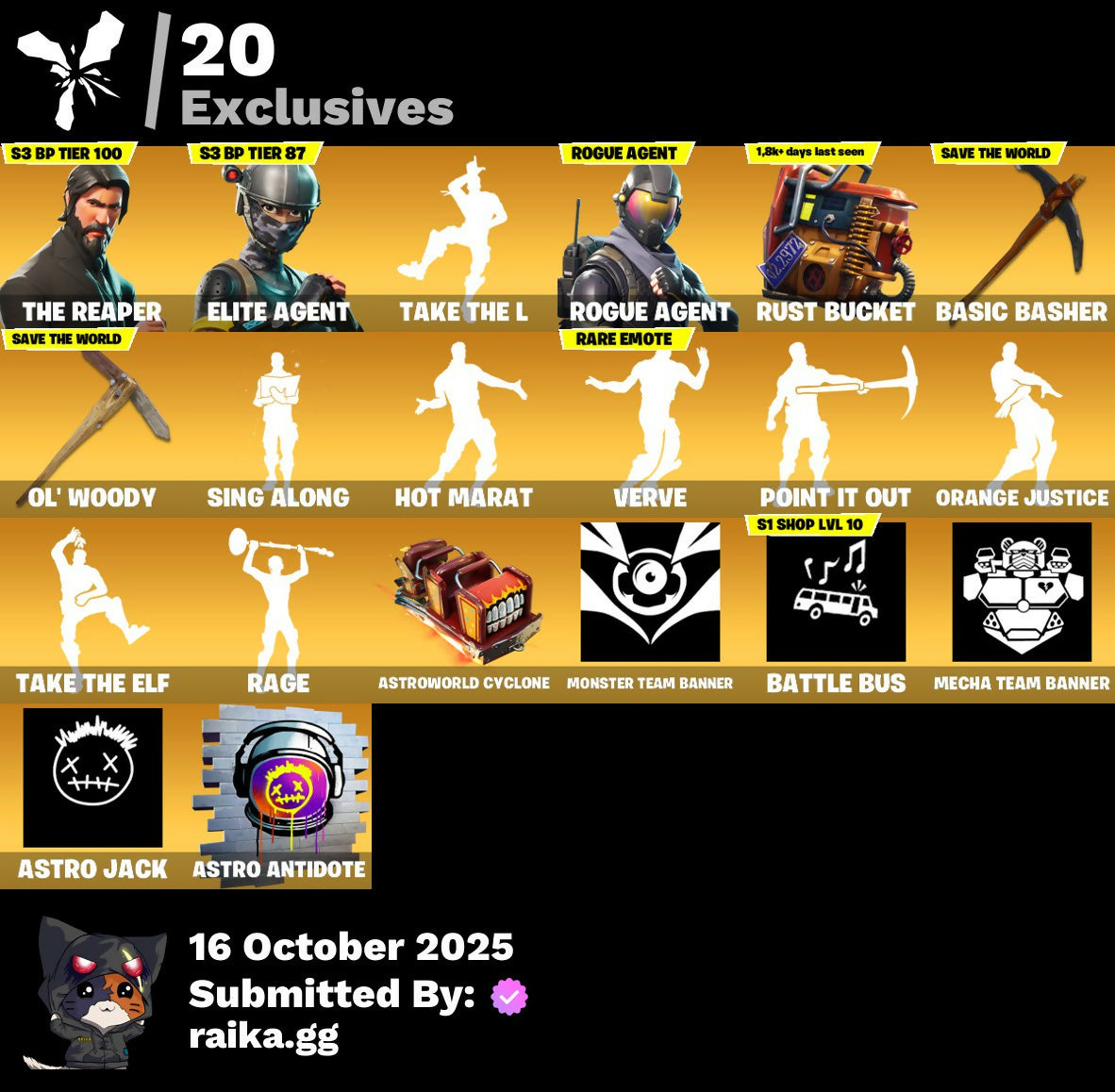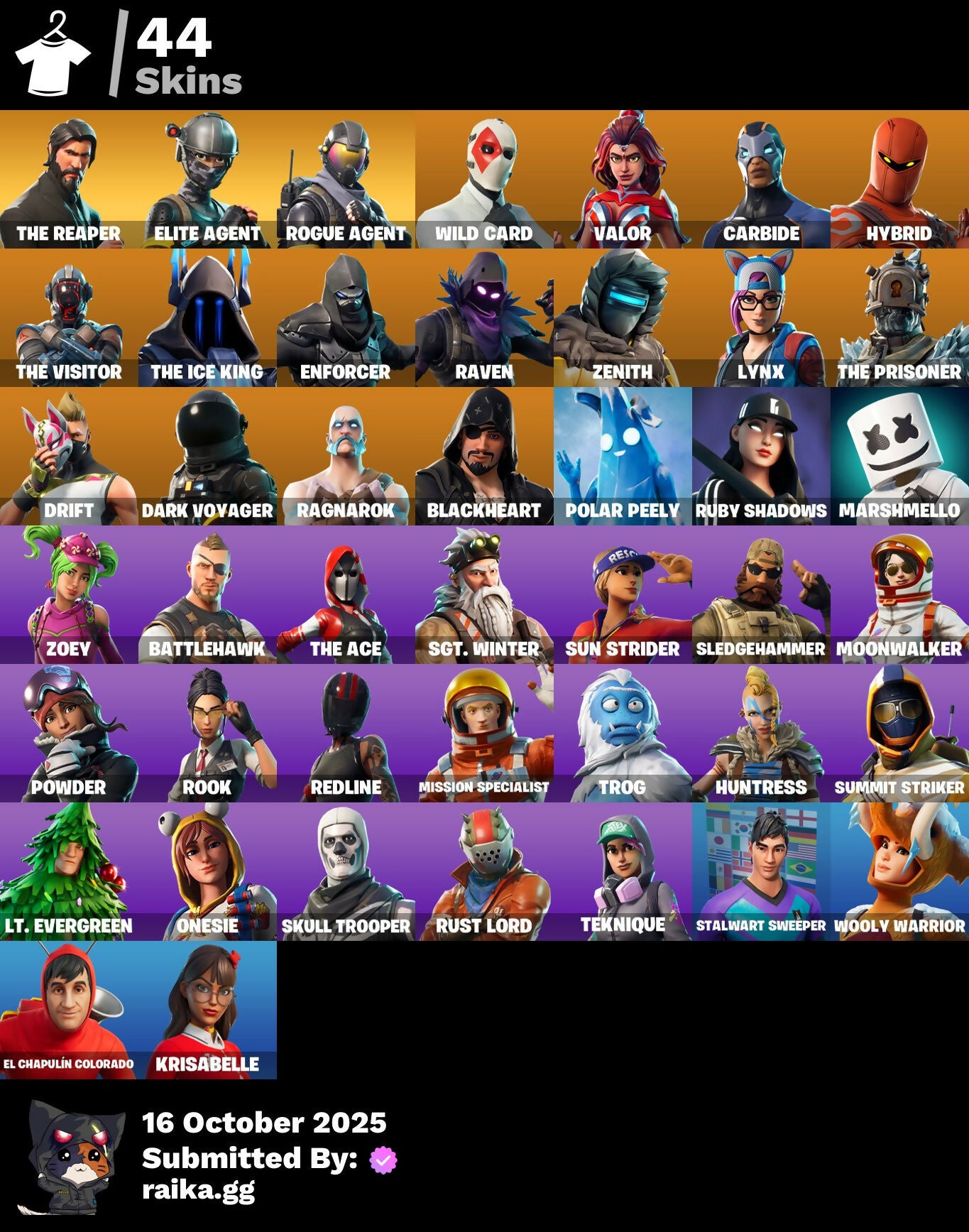 [PC/PSN/XBOX] 44 skins | The Reaper | Elite Agent | Rogue Agent | Wild Card | Valor | Carbide | Hybrid | The Visitor | The Ice King | Enforcer | Raven | 700 VB / FN