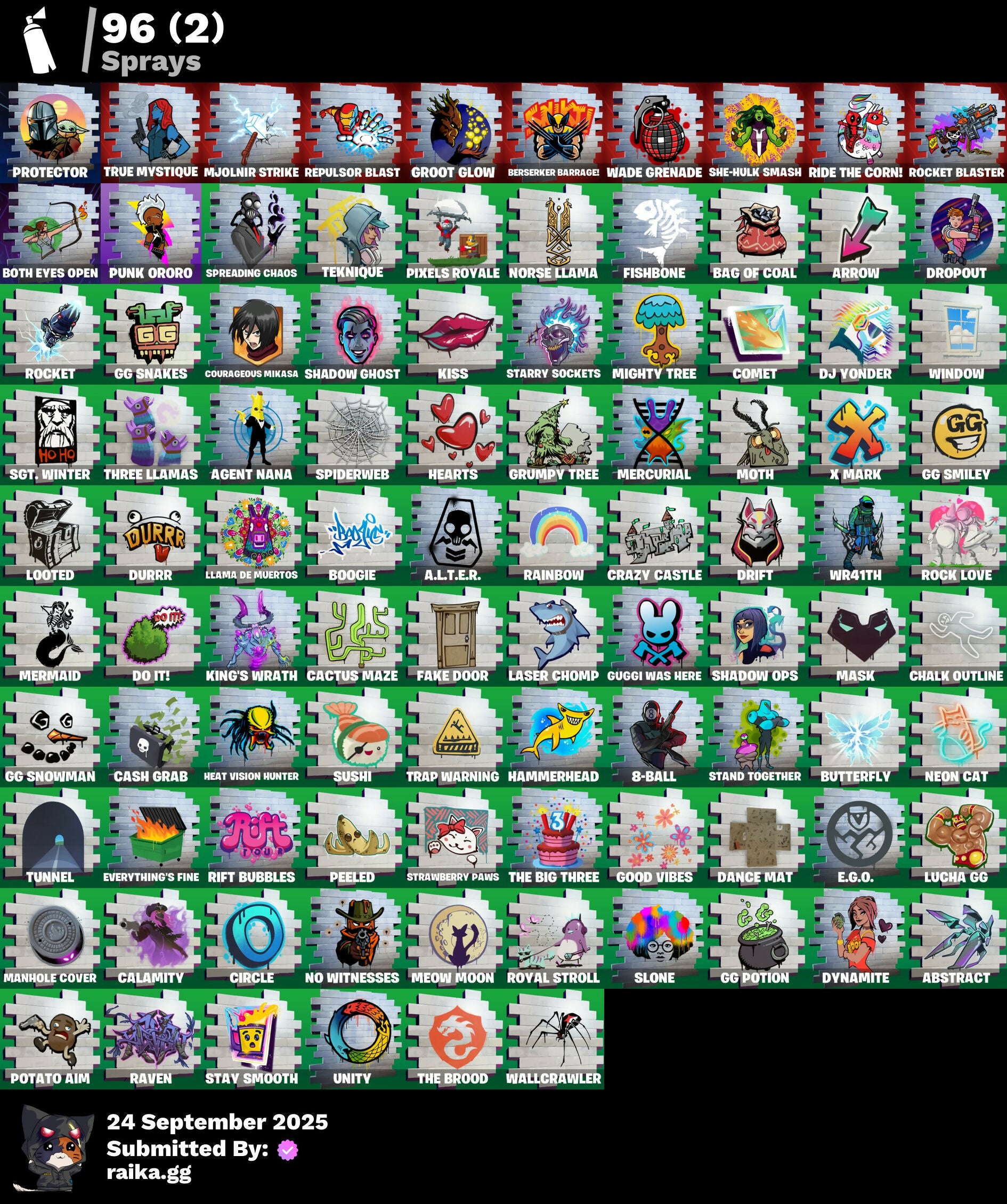 Sprays: 96