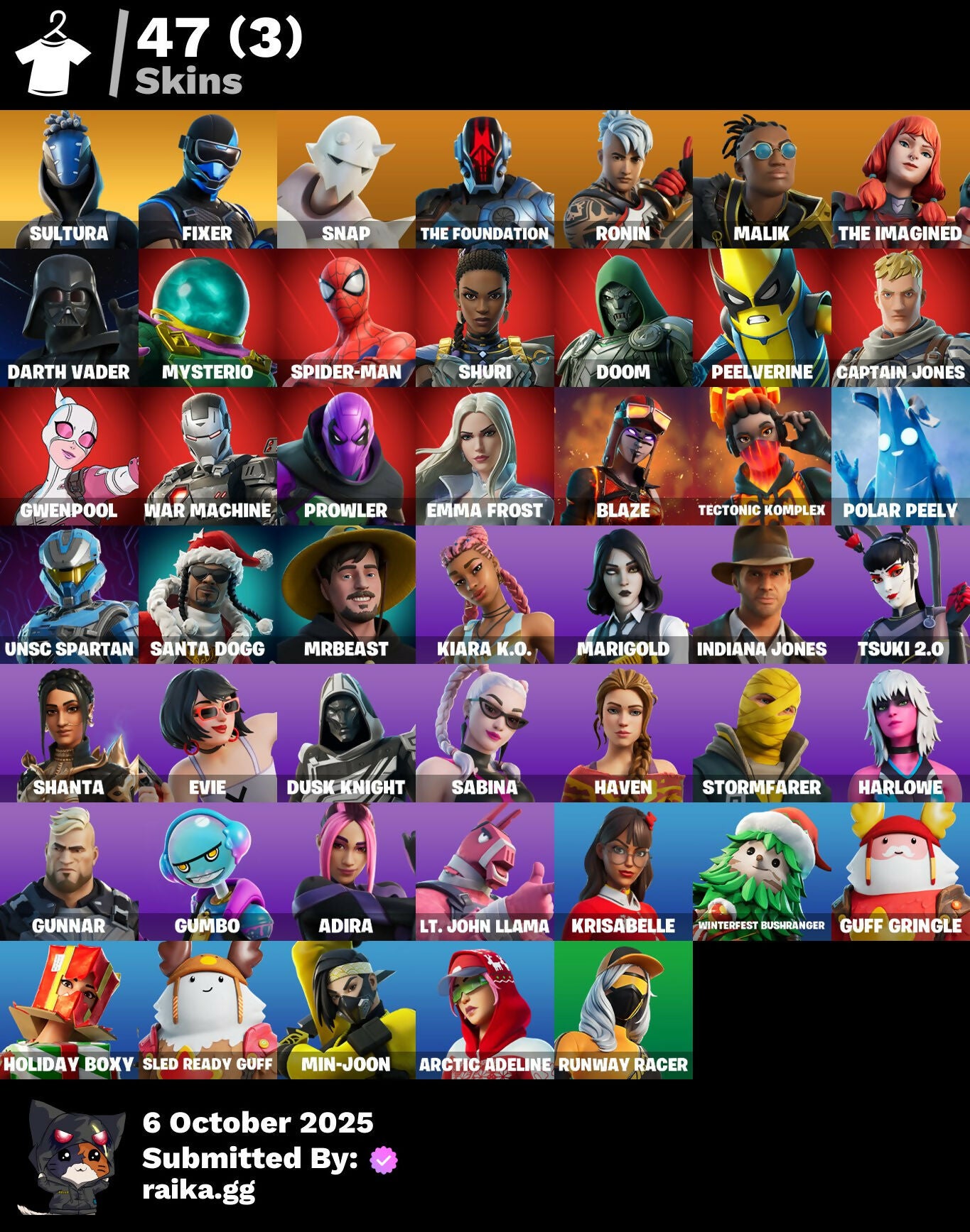 [PC/PSN/XBOX] 47 skins | Sultura | Fixer | Snap | The Foundation | Ronin | Malik | The Imagined | Darth Vader | Mysterio | Spider-Man | Shuri | Doom | 400 VB / FN