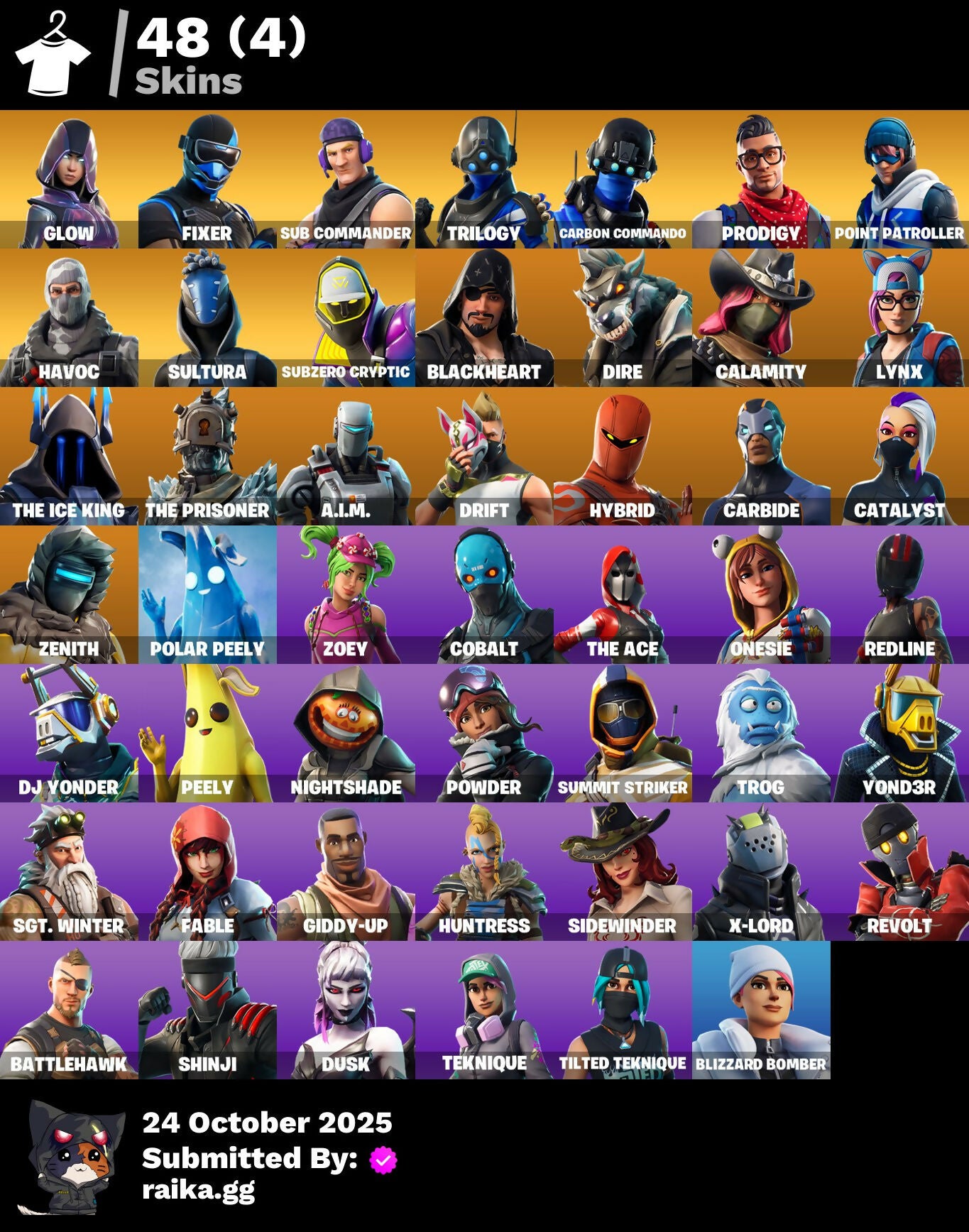 [PC/PSN/XBOX] 48 skins | Glow | Fixer | Sub Commander | Trilogy | Carbon Commando | Prodigy | Point Patroller | Havoc | Sultura | Subzero Cryptic | 500 VB / FN