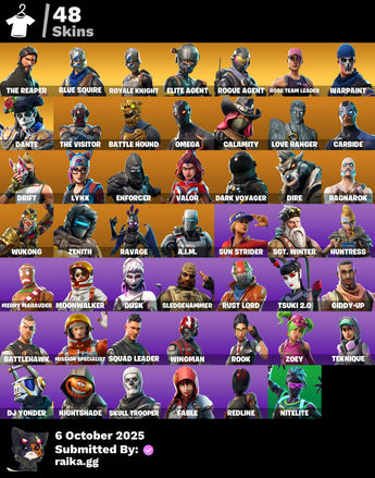 [PC/PSN/XBOX] 48 skins | OG STW | The Reaper | Blue Squire | Royale Knight | Elite Agent | Rogue Agent | Dante | The Visitor | Battle Hound | Omega | Calamity | 1475 VB / FN