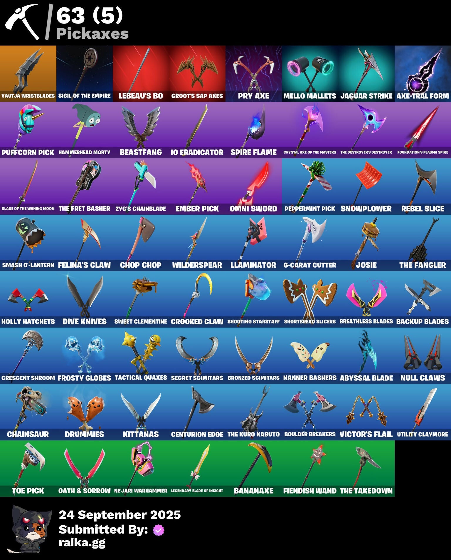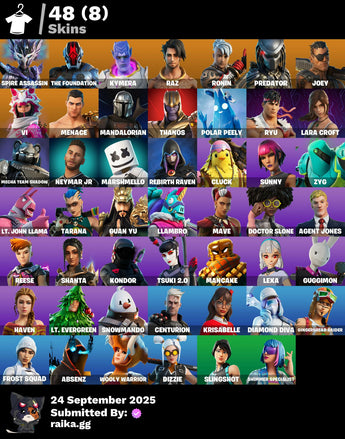 [PC/PSN/XBOX] 48 skins | Spire Assassin | The Foundation | Kymera | Raz | Ronin | Predator | Joey | Vi | Menace | Mandalorian | Thanos | Polar Peely | Ryu | 800 VB / FN