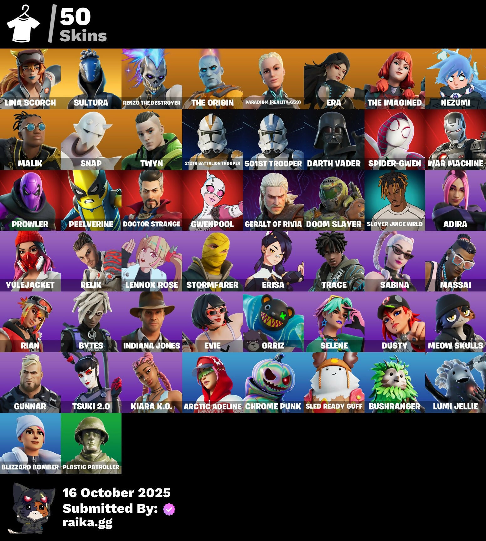 [PC/PSN/XBOX] 50 skins | Lina Scorch | Sultura | Renzo the Destroyer | The Origin | Paradigm (Reality-659) | Era | The Imagined | Nezumi | Malik | Snap | 550 VB / FN