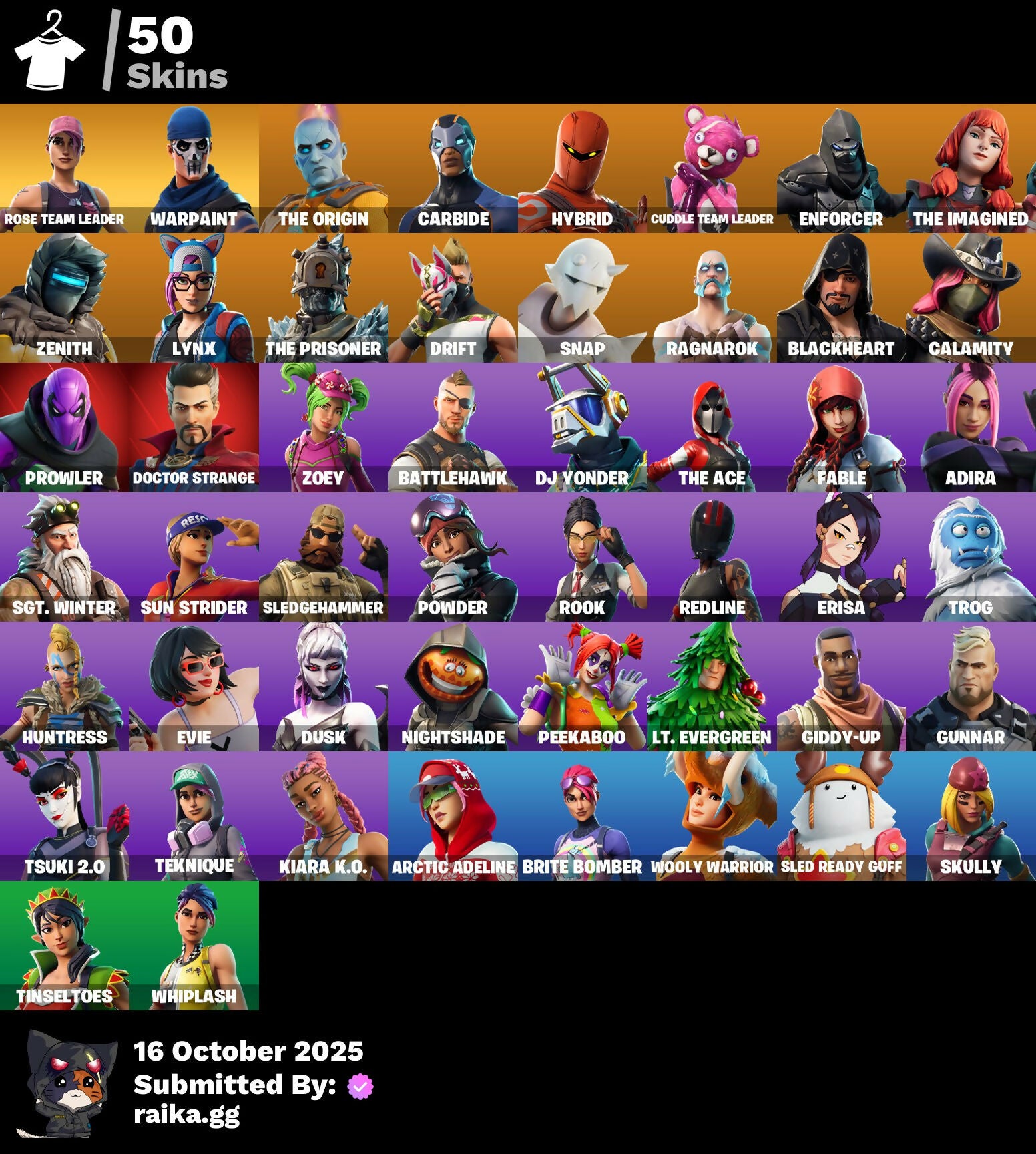 [PC/PSN/XBOX] 50 skins | OG STW | The Origin | Carbide | Hybrid | Cuddle Team Leader | Enforcer | The Imagined | Zenith | Lynx | The Prisoner | Drift | Snap | 1400 VB / FN