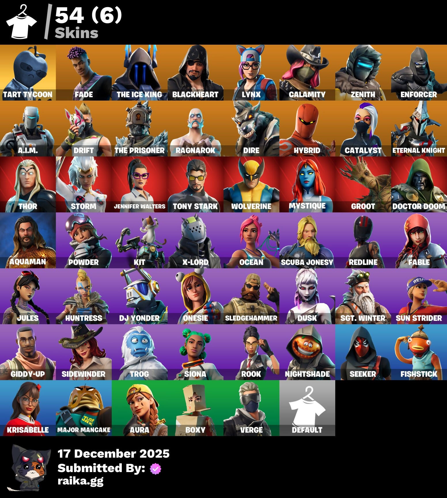 [PC/PSN/XBOX] 54 skins | Tart Tycoon | Fade | The Ice King | Blackheart | Lynx | Calamity | Zenith | Enforcer | A.I.M. | Drift | The Prisoner | Ragnarok | 300 VB