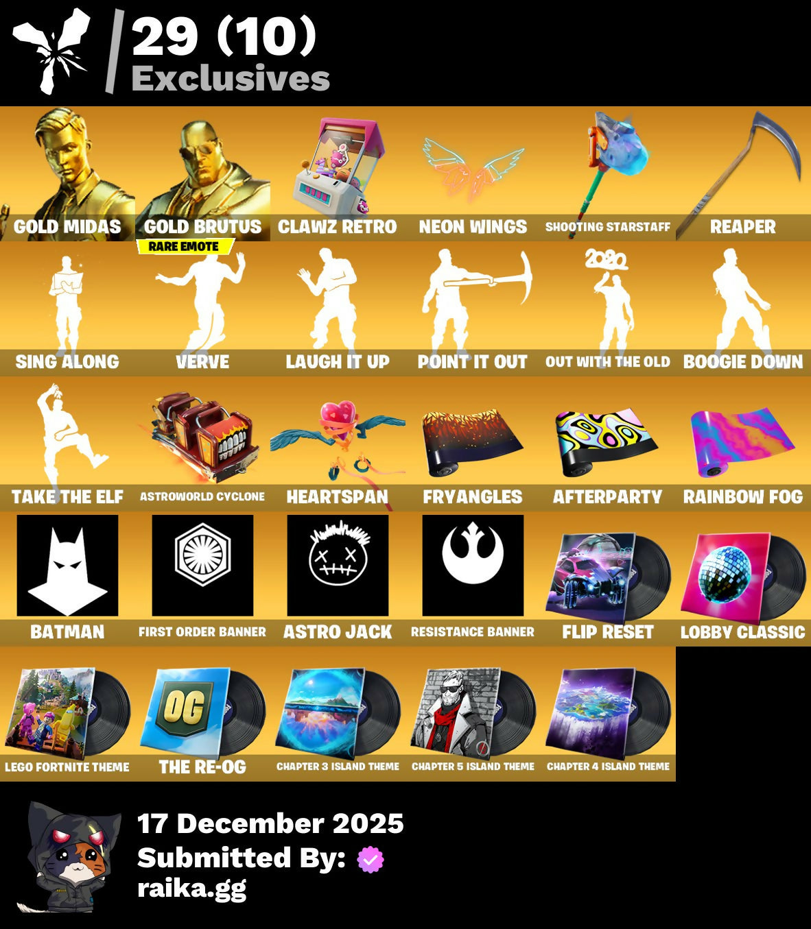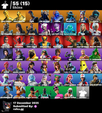 [PC/PSN/XBOX] 55 skins | Gold Midas | Gold Brutus | Fade | The Ice King | Fusion | Deadeye | Lynx | Zenith | The Prisoner | Gear Specialist Maya | Ravage | 800 VB