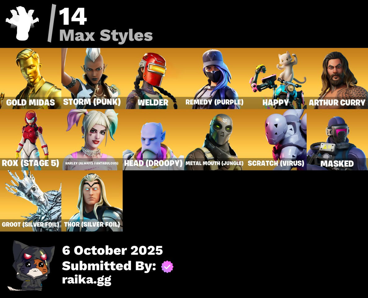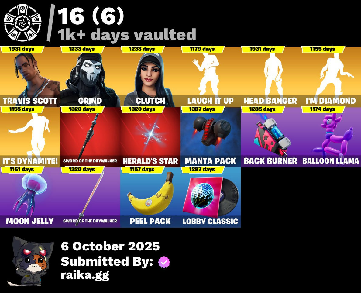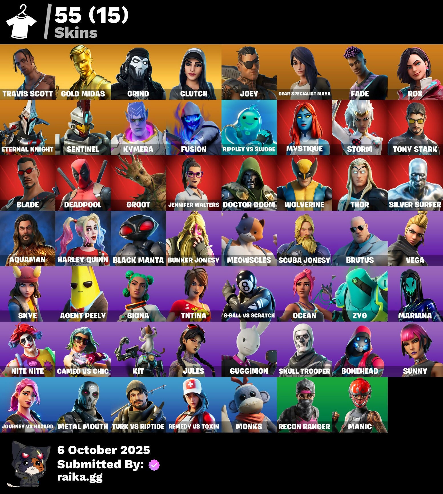 [PC/PSN/XBOX] 55 skins | Travis Scott | Gold Midas | Grind | Clutch | Joey | Gear Specialist Maya | Fade | Rox | Eternal Knight | Sentinel | Kymera | Fusion | 270 VB / FN