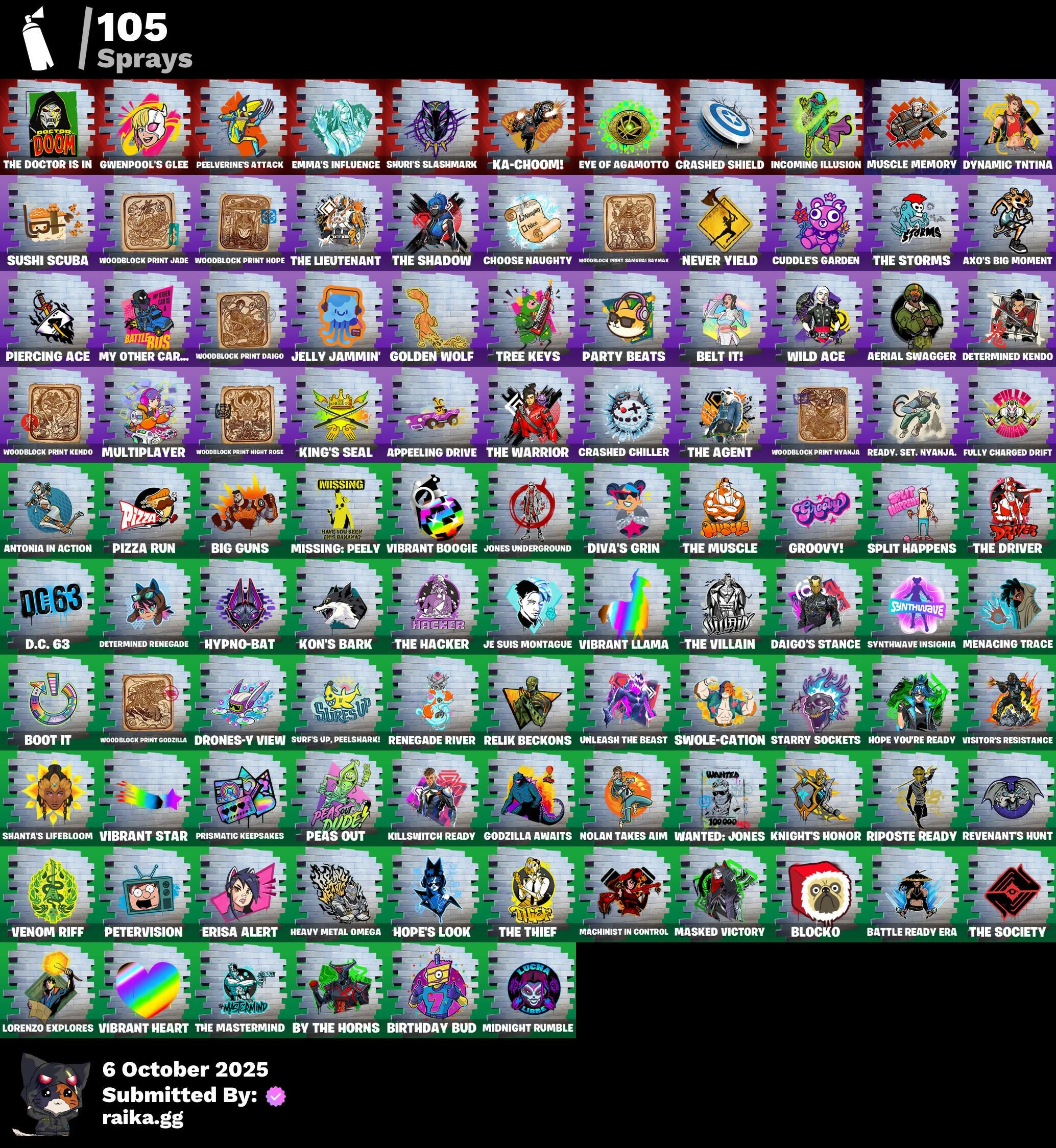 Sprays: 105