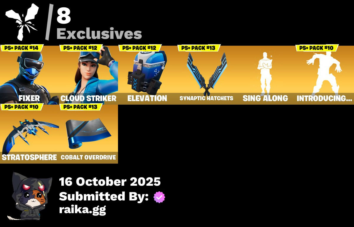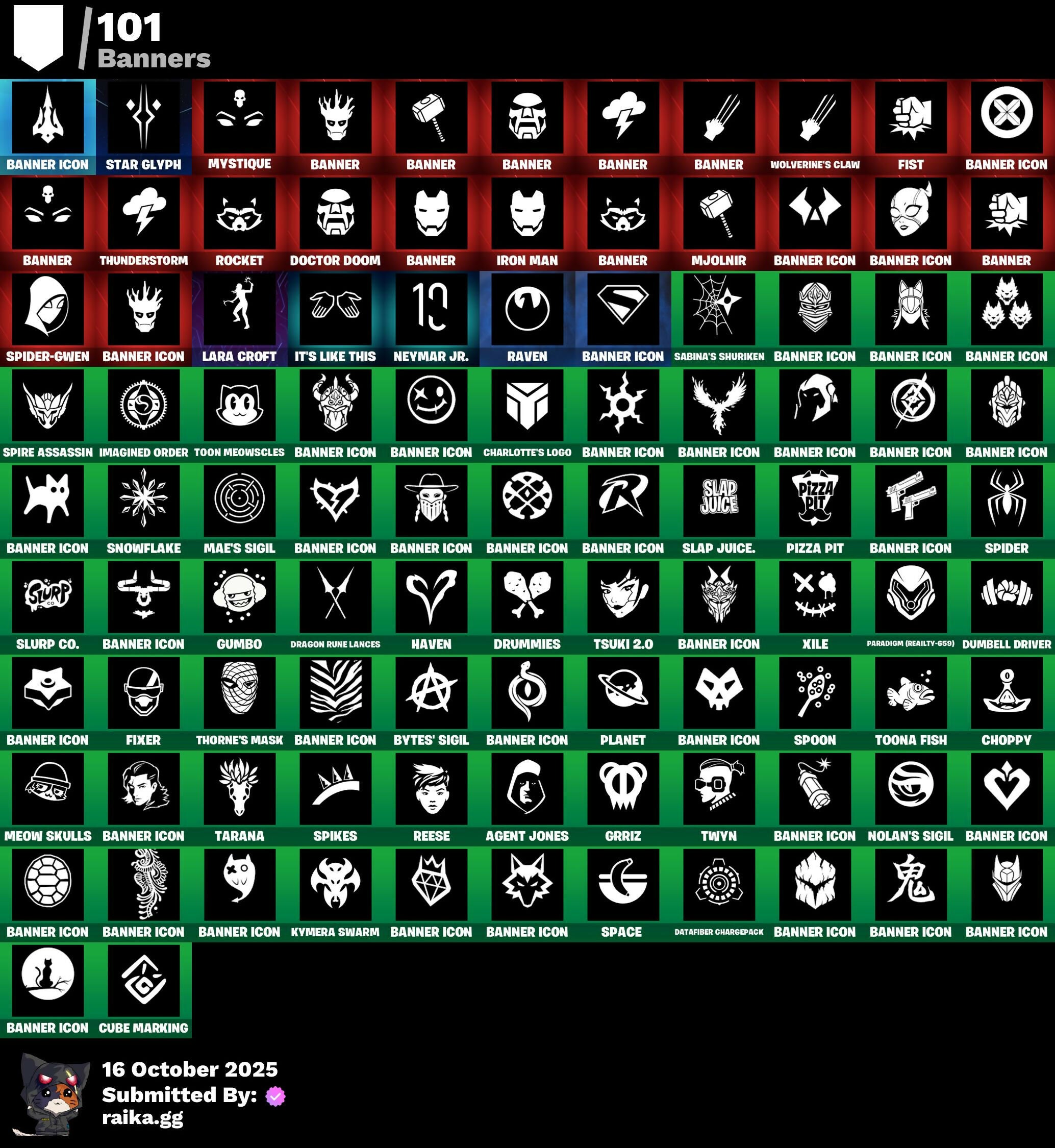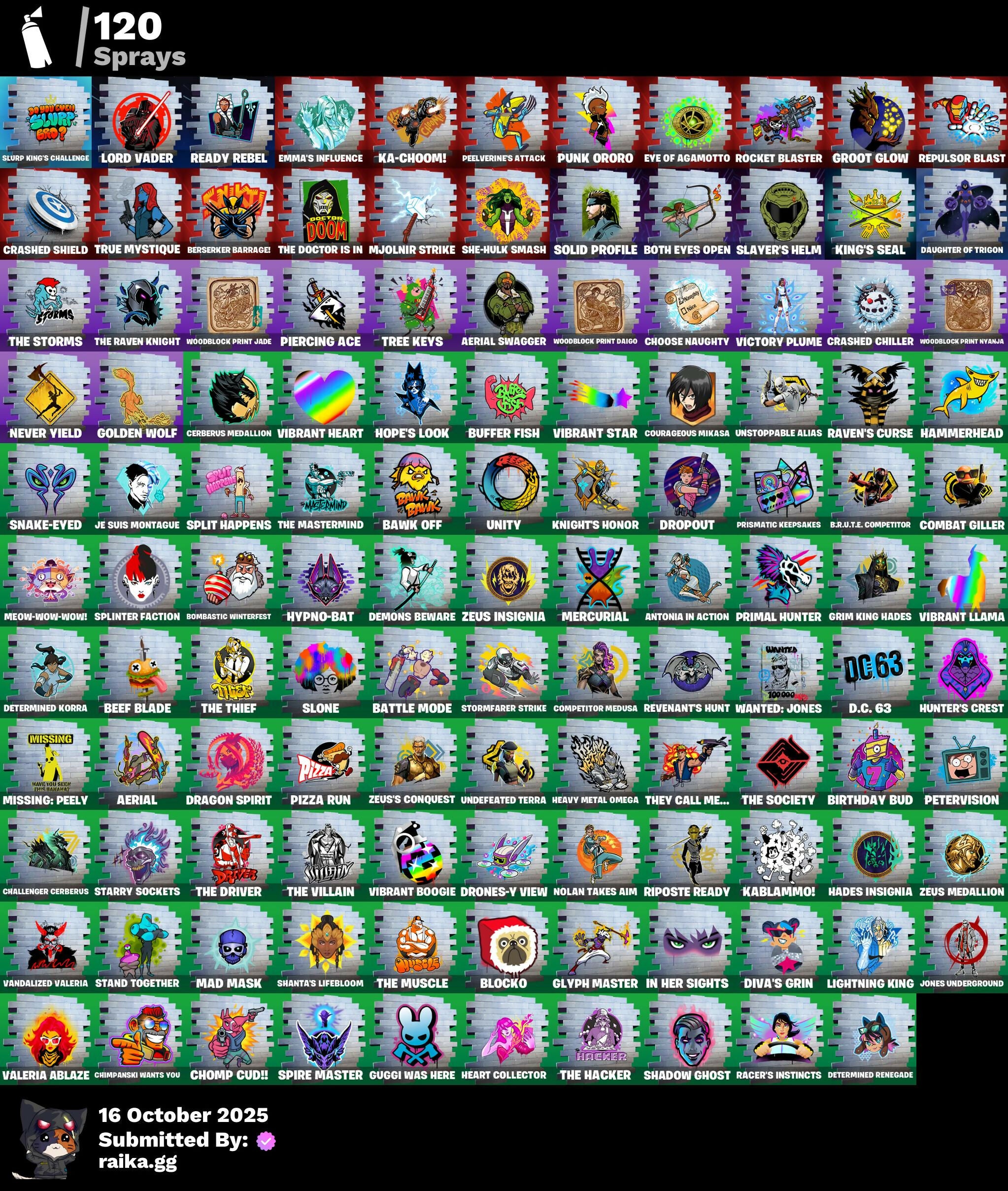 6-Carat Cutter, 8-Ball Janky, Abyssal Vault, Acolyte's Curse, Adira's Armor, Adira's Battle Flag, Aerial, Aerial Classic, Aerial Swagger, Agent Jones, Agent Jones (Jump 31), Ahsoka Tano, Ancestral Bloom, Antonia, Antonia in Action, Aphrodite, Arcane Energy Glider, Arcane Steel, Ares, Aura, Auto Clutch, Avatar's Flourish, Axe-Tral Form, Azarath Metrion Zinthos!, B Splat, B.R.U.T.E. Competitor, Backup Blades, Baron's Hoard, Bat Royale, Battle Mode, Bawk Off, Beachcomber, Bean Bag, Beatzbunny, Bedside Nanner, Beef Blade, Berserker Barrage, Birthday Bud, Black Leader, Black One X-Wing, Blade Of The Waning Moon, Blitz Axe, Blocko, Bobo, Bombastic Winterfest, Bone Patrol, Boogie Down, Boots 'N' Cats, Both Eyes Open, Bounty 'Brella, Breakshore Trident, Brilliant Cutters, Bubbloon, Buffer Fish, Bullet Rider, Bunsen Backburner, Burning Ambition Valeria, Bushie Bright, Buttoned Up, Bytes' Sigil, Cacodemon, Cake Clobberer, Captain Jones's Shield & Pickaxe, Captain Llamerica, Carbon Fiber Holster, Cardistry, Cauldron Chill, Centurion, Centurion Edge, Cerberus, Cerberus Bite, Cerberus Medallion, Chainsaur, Challenger Cerberus, Challenger's Staff, Chaos Directive, Charge Pack, Charlotte's Logo, Chemist's Cloudglider, Chimpanski Wants You, Choice Knit, Chomp Cud!!, Choose Naughty, Choppy, Chrome Marked, Chromebrella, Chromeseed, Clara, Clawbox, Clawz Retro, Clean Sweep, Cliffside Soarer, Cloud Striker, Cloudburst, Cluck, Cluck (Slurpy), Clucking Mad, Clutch & Dagger, Cobalt Overdrive, Collector Kado Thorne, Combat Giller, Comfy Cats, Competitor Medusa, Conch Call, Coral Crush, Coupé Sash, Courageous Mikasa, Cozy Conch, Crack It, Crashed Chiller, Crashed Shield, Crescent Shroom, Crowning Achievement, Crystal Axe Of The Masters, Cube Marking, Cubed, Cursed Marionette, D.C. 63, Daisies, Datafiber Chargepack, Daughter of Trigon, Dawn Duelist Nisha, Dealer's Deck, Death Star 'Brella, Deep Dive, Demons Beware, Denied, Determined Korra, Determined Renegade, Diamond Diva, Diamond Throne, Diamondclaw Picker, Dice Roll, Dimensional Gate, Dino Deck, Diva's Grin, Dive Knives, Doctor Doom, Dogg Treat, Doom Chalice, Doom's Cowl, Dragon Rune Lances, Dragon Spirit, Dreamer's Two-Shot, Dreamzy Handbag, Drones-V View, Dropout, Drummies, Duelist's Foil, Dumbbell Driver, Dumbell Driver, Eclipse Brella, Eclipsed Edges, Eggar, Electro Pairing Blades, Elegance Blade, Elegant Crowbar, Elevation, Elite Servo, Ember Pick, Emma's Influence, Endless Scroll, Escapees, Eternal Ranker, Evasive Maneuvers, Expert's Bonebag, Eye of Agamotto, FNCS Ace, Fa-La-La-Llama, Fangs Of Hesk, Felina, Felina's Claw, Fiendish Wand, Final Eclipse, Fish Thicc, Fishstick Janky, Fist Bump, Fixer, Flaky Feast, Flapjack Flyer, Flashback Breakdown, Flight Risk, Flippin' Away, Flux Silvera, Focused, Foil Flex, Fortilla Flier, Foundational 'Brella, Freshly Forged, Frosted Frets, Frosty Globes, Galactic Spiral, Gallant Gear, Gathering Storm, Get Griddy, Ghost Portal, Gilded Heart, Gilded Morphic Blades, Glorious Giftblade, Glyph Master, God Emperor Doom, Golden Scythe, Golden Wolf, Gorgon's Aegis, Grand Glacier Glider, Grav-Fusion, Grim King Hades, Gringle Gift, Groot, Groot Glow, Groots Sap Axes, Grriz, Guggi Was Here, Gum Brawler, Gumbo, Gwenpool's Katanas, Gwetterman Jacket, Hadean Gate, Hades Insignia, Hammerhead, Hammers Of Justice, Hand Of Lightning, Har-Har-Har!, Hatch Pack, Haute Hustle, Have A Seat, Haven, Heart Collector, Heart's Carver, Heart's Desire, Heart's Rest, Heartwinder, Heavy Metal Omega, High Society Glider, Holiday Boxy, Holly Hatchets, Holo-Boot Pack, Hope, Hope Star, Hope's Look, Hordes War Wheel, Hot Pokers, Humbug Slicer, Hunter's Crest, Hypno-Bat, I'm A Mystery, IO Field Flyer, Ice-Blasted Snow Cruncher, Ignition Pack, Imagined Edge, Imagined Order, Immortal War Doru, Imperial March, In Her Sights, Infinite Swirl, Influential, Introducing..., Invasion, Inventor's Choice, Iron Man, Iron Man Backplate, It Is Finished, It's Like This, It's... You?, Jaguar Strike, Je Suis Montague, Jennifer Walters, Jet Signals, Joia Trophy, Jones Underground, Jones' Field Pack, Josie, Jumbo Popcorn, Jurassically Charged, Ka-Choom!, Kablammo!, Kado Thorne, Kata-Pack, Khaby Lame, King Flamingo, King Wings, King's Seal, Kittanas, Knife Sharpener, Knight's Helm, Knight's Honor, Korra, Krisabelle, Kymera Swarm, LBC Signature, Lady In Gold, Lara Croft, Lectro Guard Pack, Legend's Modkit, Legend's Retribution, Legendary Blade Of Insight, Lightning King, Lil Split, Lil' Black Heart, Lil' T-6 Shuttle, Loaded Barrel Bag, Lone Wolf Holster, Lord Vader, Love It!, Lunar Hyperjet, Lunar Skyspan, Lunarian Luxury, Lunarios, Luxury Lockbox, Ma-Ya-Hi, Mad Mask, Mae, Mae Jr., Mae's Sigil, Maelstrom, Mark 85 Energy Blade, Mark 90 Flight Pack, Mask of Balance, Master Plan, Mecha Wrecks, Mechafusion Interface, Medusa, Meow Skulls, Meow-Wow-Wow!, Meowtooth Plush, Mercurial, Metal Gear Mk. II, Microbot Mallet, Midas' Shadow, Mighty Marvel 'Brella, Missing: Peely, Mjolnir, Mjolnir Strike, Mjolnir's Path, Modern Rōnin, Montague, Morai, Morphic Blue, Mr. Daruma, Murktide, Mystique, Mystique's Skull, Nailed It, Nanner Bashers, Nemesis Box, Never Yield, Neymar Jr, Neymar Jr., Night Kama, Ninja Stance: Donnie, Ninja Stance: Leo, Ninja Stance: Mikey, Ninja Stance: Raph, Nisha, Nolan Chance, Nolan Takes Aim, Nolan's Sigil, Nyanja's Catpak, O.M.E.G.A. Spear, Old Snake, Oopsy Drones-V, Ooze, Oozey, Organic Diamond, Oscar, Outlaw's Knife Rack, Outlaw's Whipknives, Paint Pummellers, Paradigm (Reality-659), Peelverine's Attack, Peely Whip, Peppermint Paraglider, Perfect Pivot, Peter Griffin, Petercopter, Petervision, Piercing Ace, Piper Pace, Pit Faller, Pit Master, Pitcycle, Pizza Pit, Pizza Run, Piñata Brian, Planet, Poacher's Regrets, Point & Shoot, Polar Peely, Polished Stone, Popular Vibe, Poseidon, Powder Keg, Precision Pointe, Premiere Poms, Primal Hunter, Prismatic Keepsakes, Prized Llama, Pry Axe, Punk Ororo, Punk Powerglider, Puppet's Prowl, R3x Tail, Rabbit Ears, Racer's In