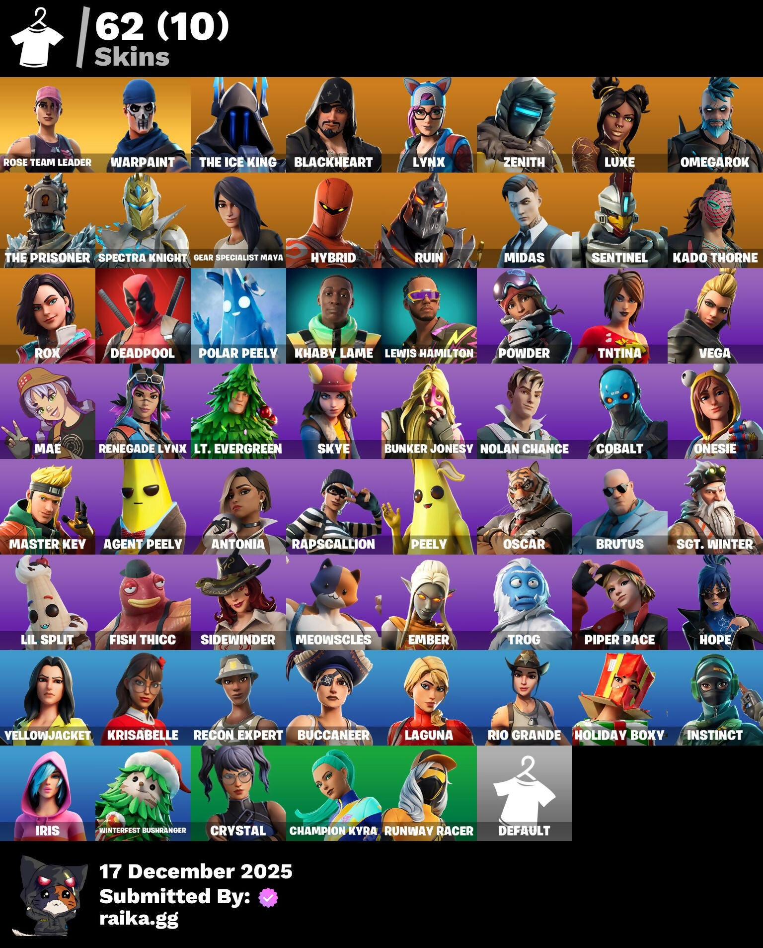 [PC/PSN/XBOX] 62 skins | OG STW | The Ice King | Blackheart | Lynx | Zenith | Luxe | Omegarok | The Prisoner | Spectra Knight | Gear Specialist Maya | Hybrid | 450 VB