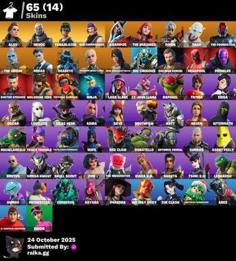 [PC/PSN/XBOX] 65 skins | Aloy | Havoc | Trailblazer | Sub Commander | Krampus | The Imagined | Ronin | Snap | The Foundation | The Origin | Midas | Deadeye | 1650 VB / FN