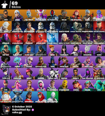 [PC/PSN/XBOX] 69 skins | Joey | Torin | The Origin | The Cube Queen | The Foundation | Malik | The Imagined | Ronin | Kymera | Snap | Apprentice Evie | 750 VB / FN