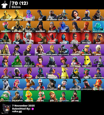 [PC/PSN/XBOX] 70 skins | Gold Brutus | Gold Midas | Reaper | Kymera | Fade | The Scientist | Eternal Knight | Rox | Catalyst | Ruin | Singularity | 600 VB / FN