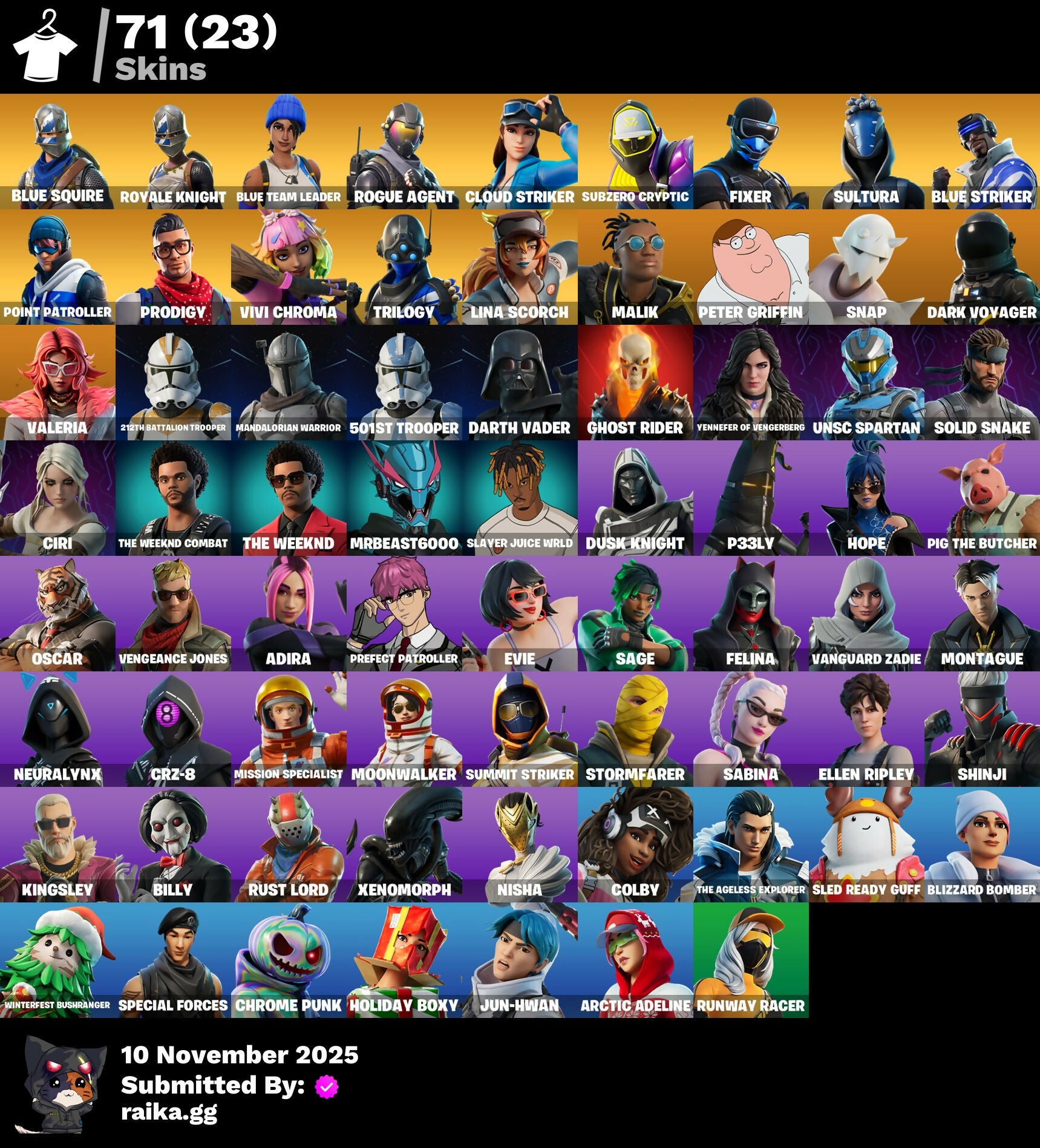 [PC/PSN/XBOX] 71 skins | Blue Squire | Royale Knight | Blue Team Leader | Rogue Agent | Cloud Striker | Subzero Cryptic | Fixer | Sultura | Blue Striker | 400 VB