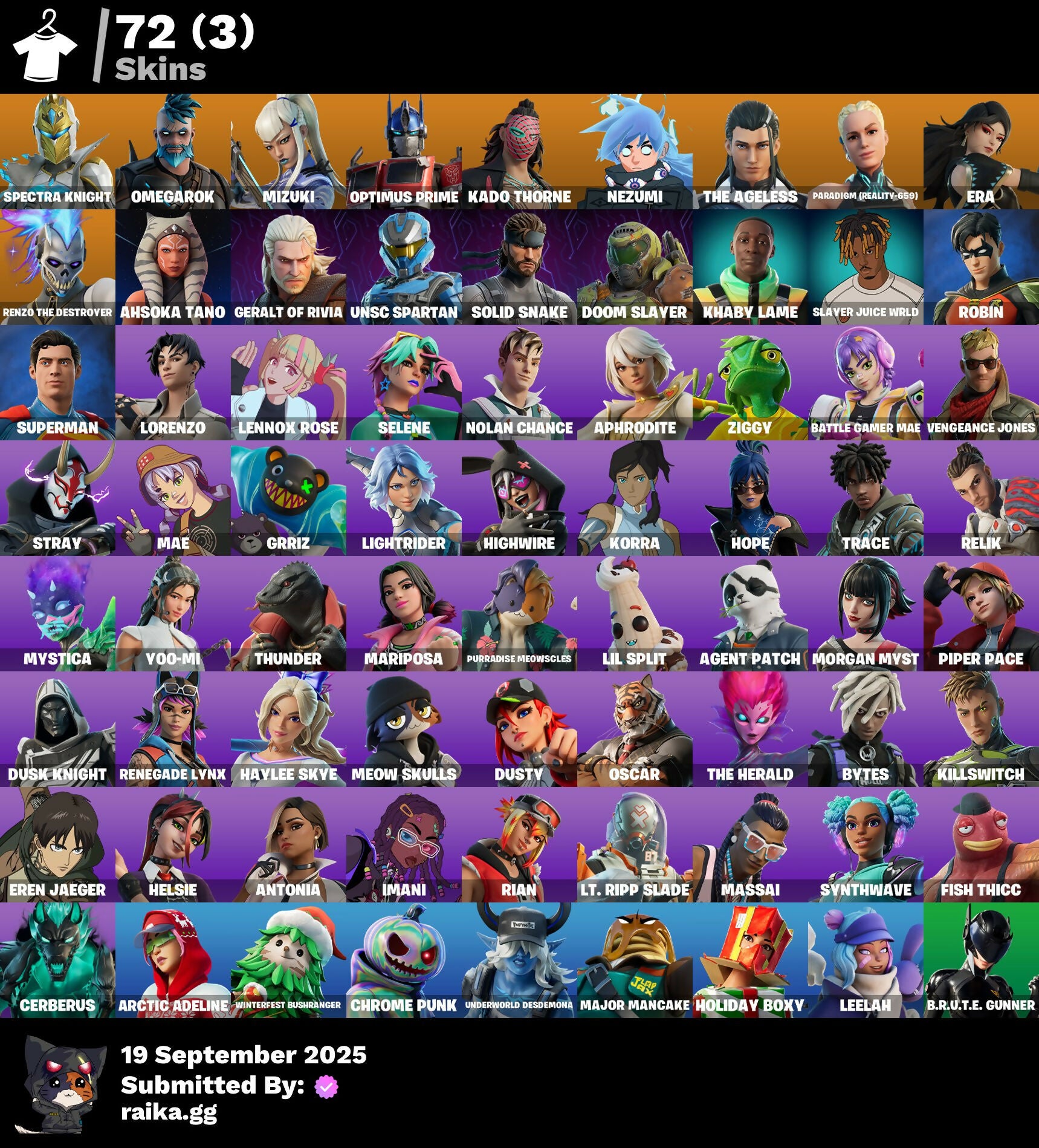 [PC/PSN/XBOX] 72 skins | Spectra Knight | Omegarok | Mizuki | Optimus Prime | Kado Thorne | Nezumi | The Ageless | Paradigm (Reality-659) | Era | 250 VB / Fortnite