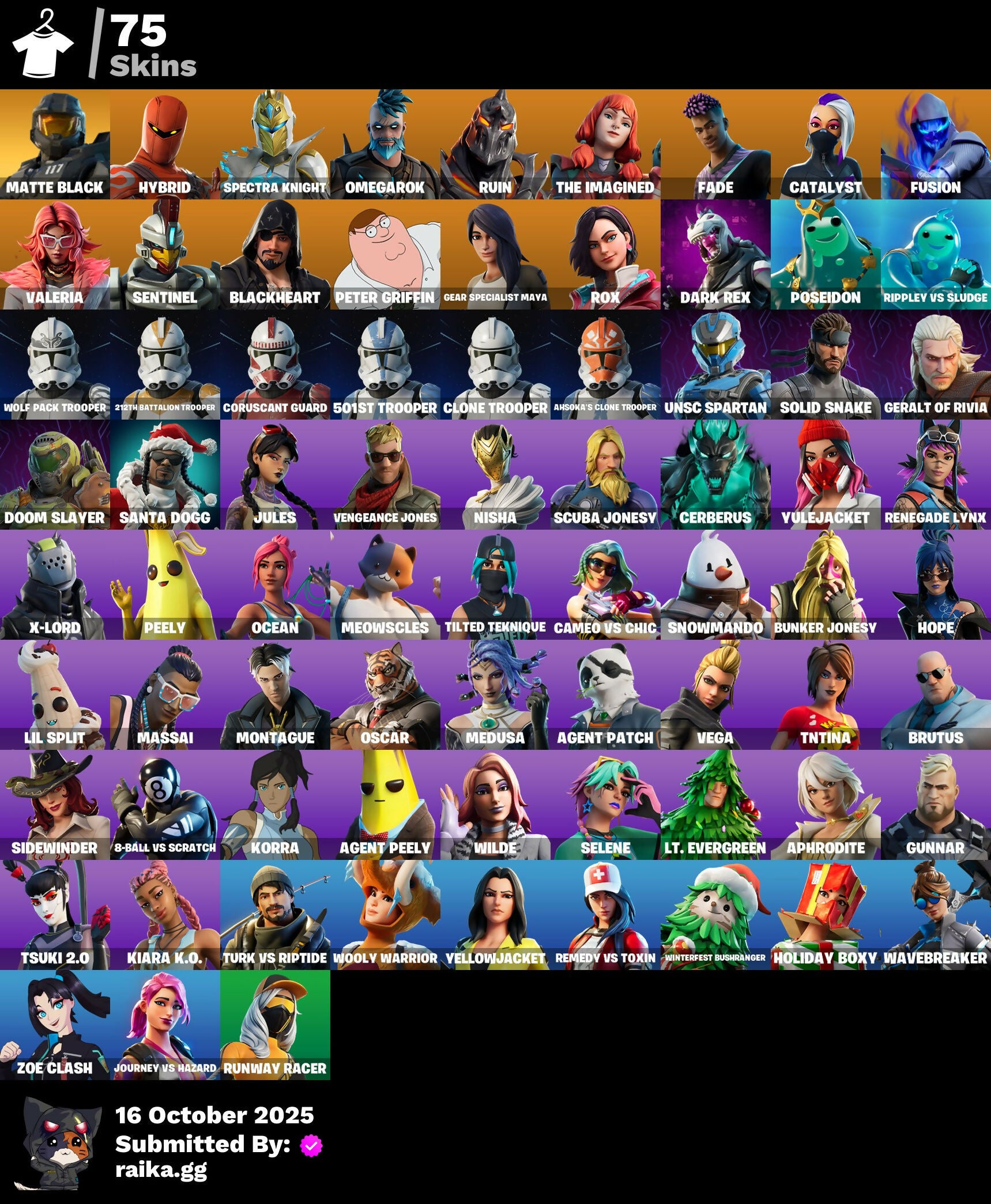 [PC/PSN/XBOX] 75 skins | Matte Black | Hybrid | Spectra Knight | Omegarok | Ruin | The Imagined | Fade | Catalyst | Fusion | Valeria | Sentinel | Blackheart | 450 VB / FN