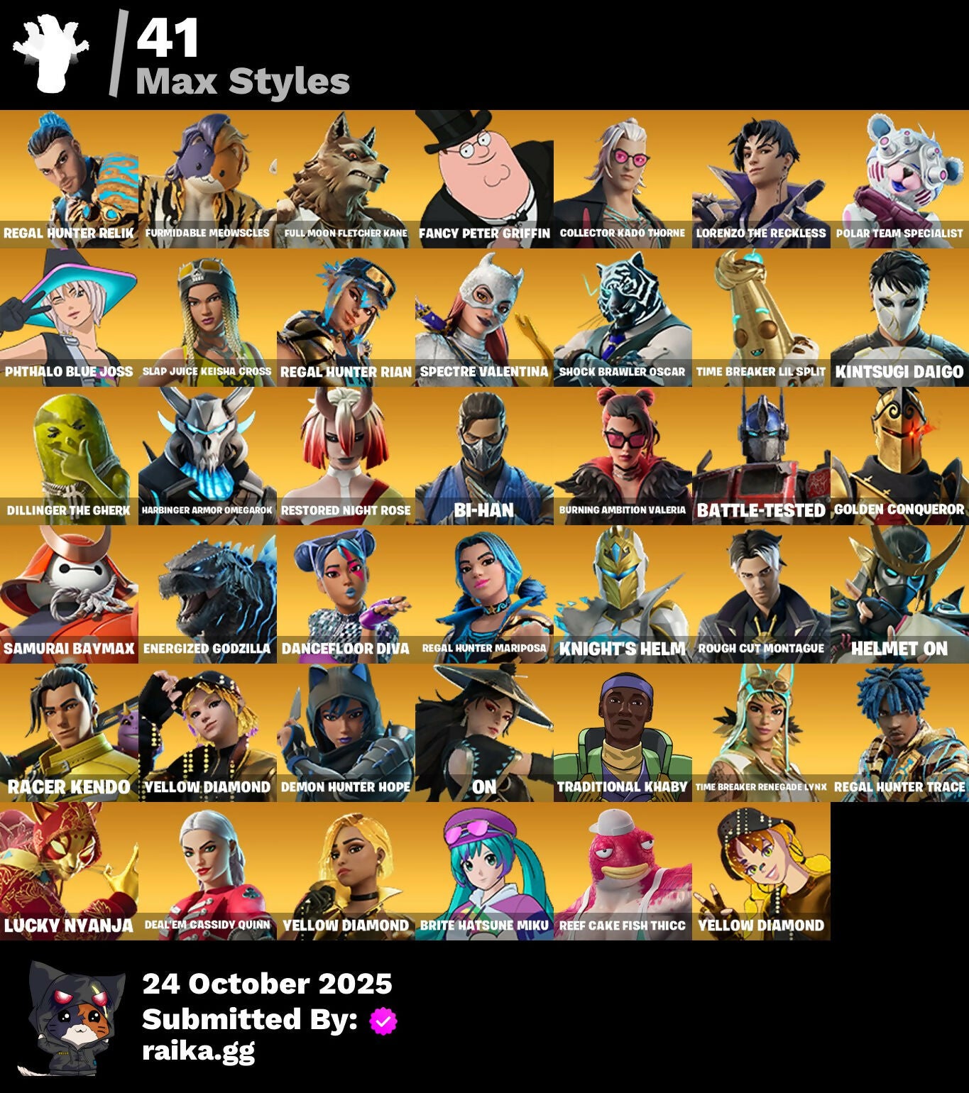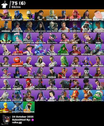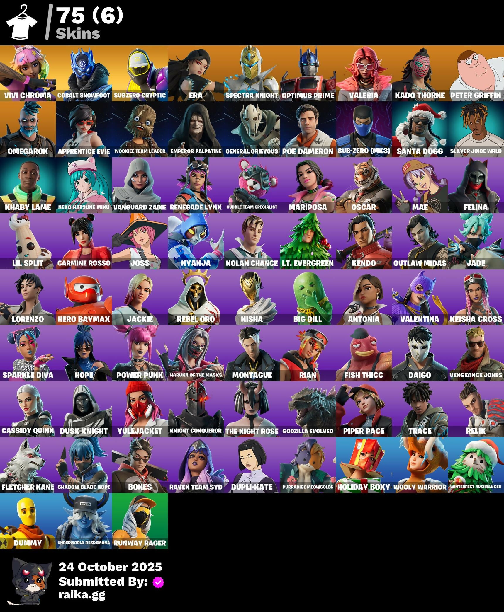 [PC/PSN/XBOX] 75 skins | Vivi Chroma | Cobalt Snowfoot | Subzero Cryptic | Era | Spectra Knight | Optimus Prime | Valeria | Kado Thorne | Peter Griffin | 200 VB / FN