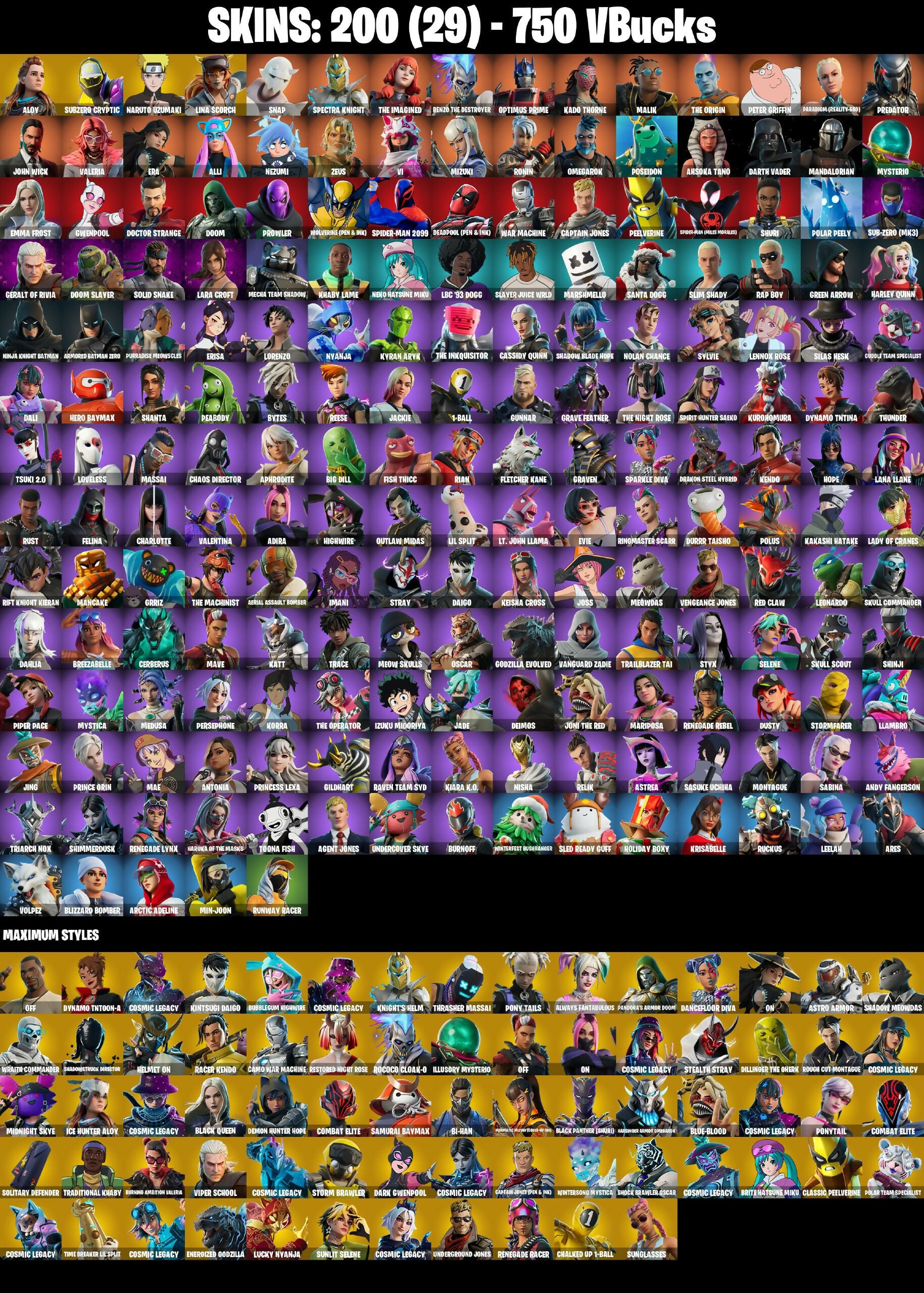 (PC/PSN/XBOX) 750 VB) 200 SKINS / Aloy | Subzero Cryptic | Naruto Uzumaki | Lina Scorch | Snap | Spectra Knight | The Imagined /