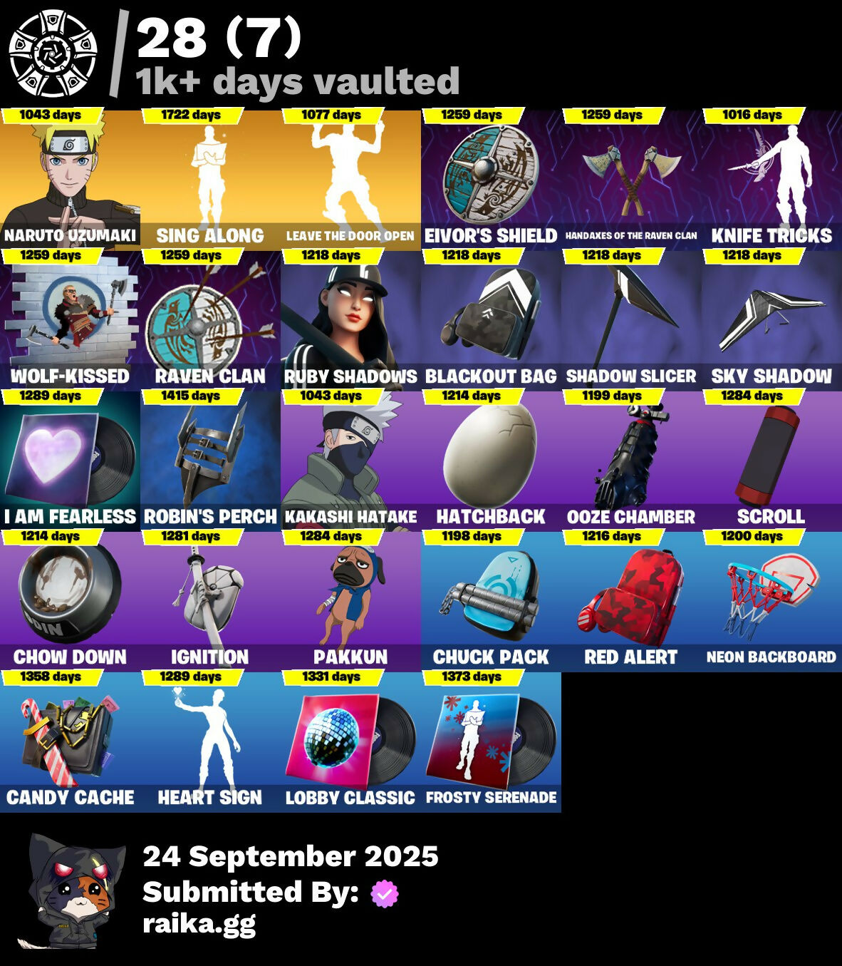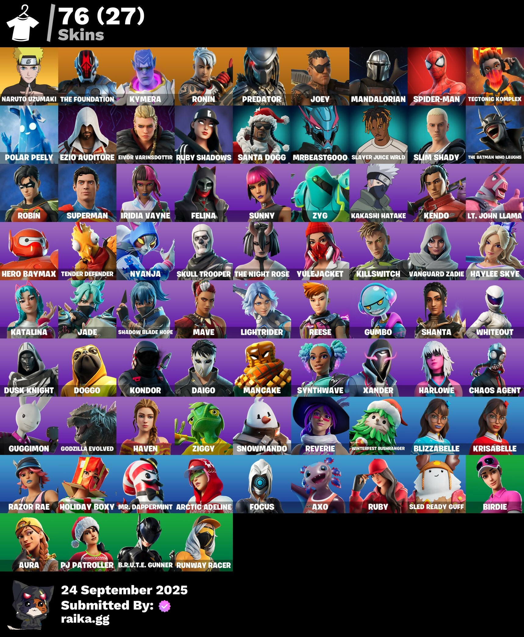 [PC/PSN/XBOX] 76 skins | Naruto Uzumaki | The Foundation | Kymera | Ronin | Predator | Joey | Mandalorian | Spider-Man | Tectonic Komplex | Polar Peely | 750 VB / FN