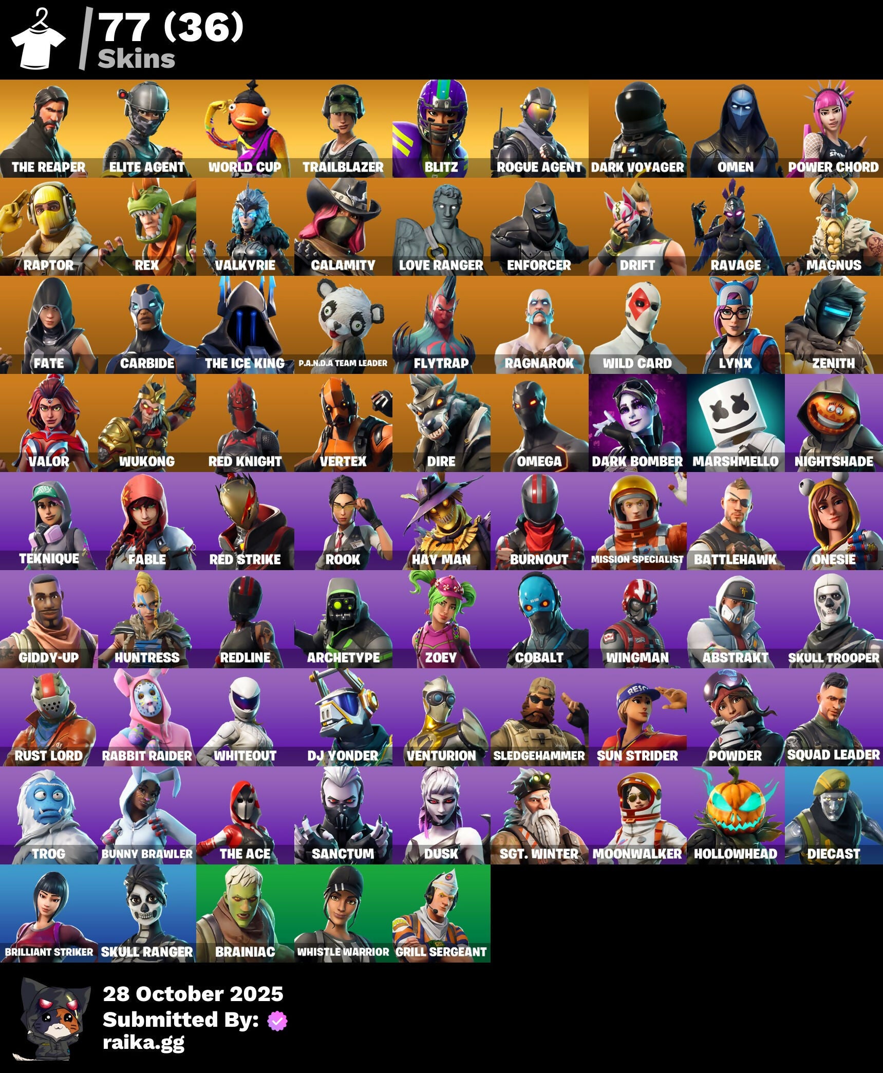 [PC/PSN/XBOX] 77 skins | The Reaper | Elite Agent | WORLD CUP | Trailblazer | Blitz | Rogue Agent | Dark Voyager | Omen | Power Chord | Raptor | Rex | 100 VB