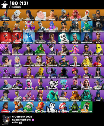 [PC/PSN/XBOX] 80 skins | Flytrap | Snap | Gear Specialist Maya | Peter Griffin | Menace | Ronin | Valeria | Wild Card | Joey | Malik | Crackshot | 350 VB / FN