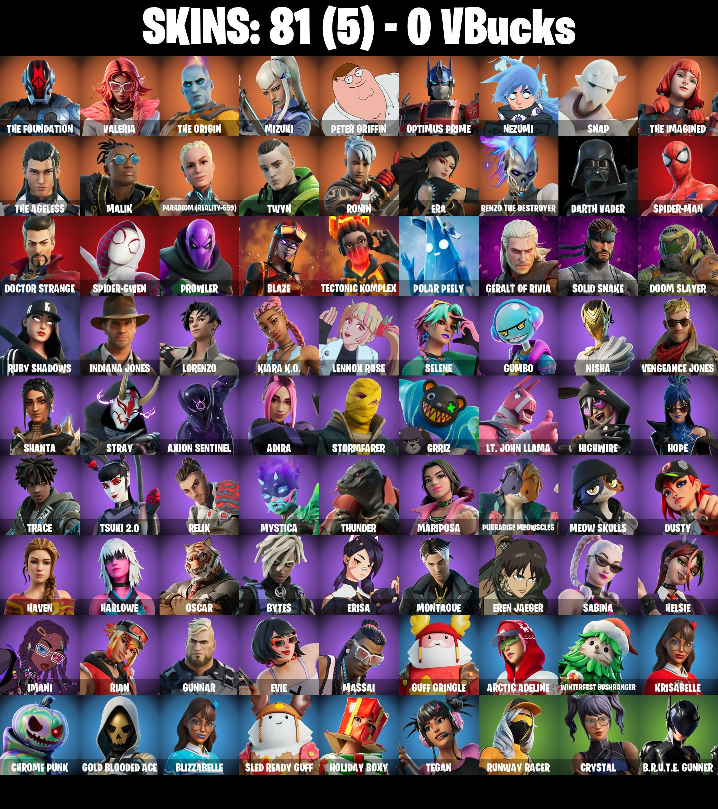 PC/PSN/XBOX |81 skins | Spider-Gwen | Spider-Man | Doctor Strange | Darth Vader | The Ageless | Mizuki | Optimus Prime | The Foundation | #B1097