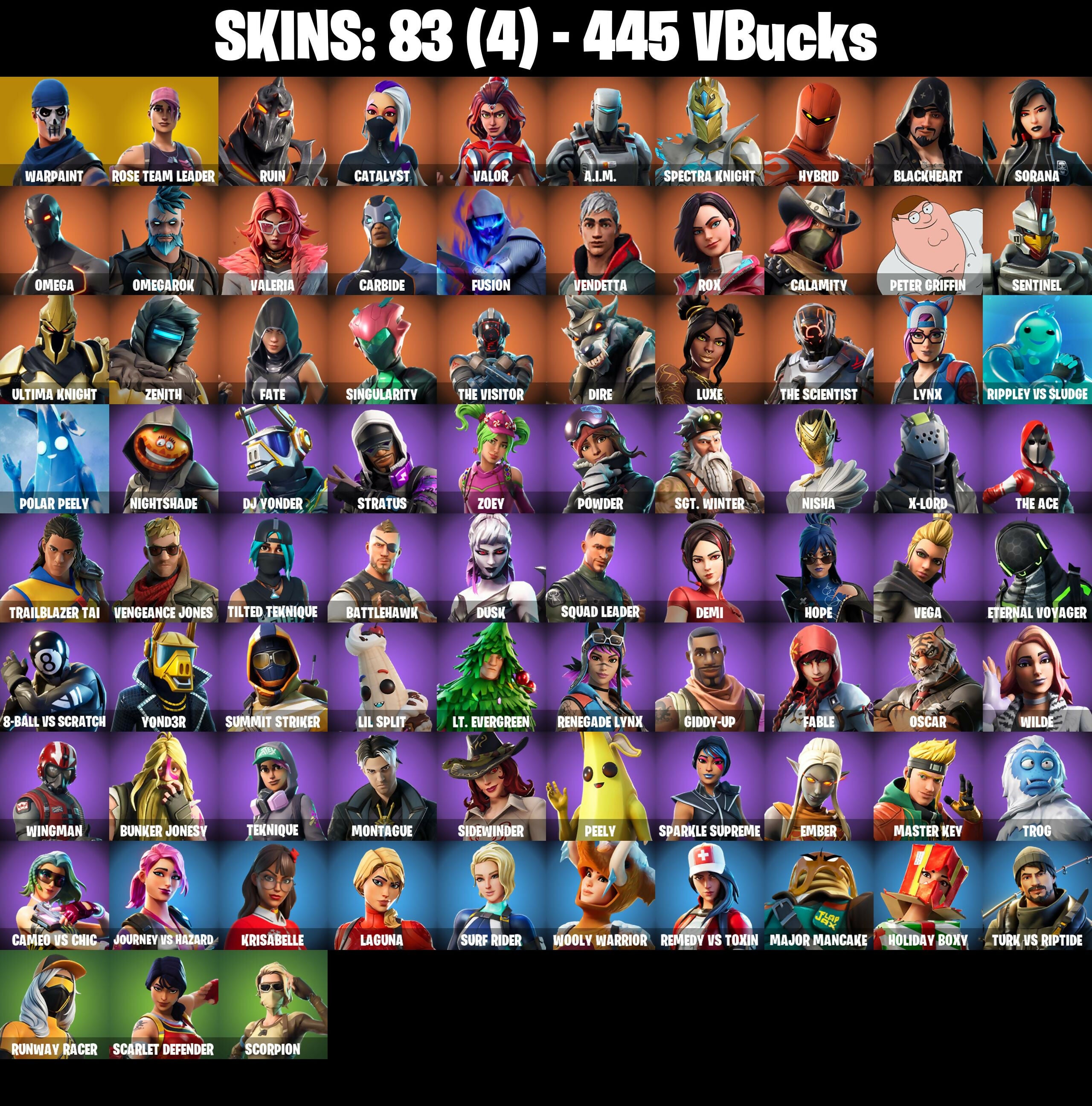 PC/PSN/XBOX |83 skins | OG STW | Candy Axe | Omega | Orange Justice | Carbide | Dire | Luxe | Peely | Vendetta | Ultima Knight | Fusion | #B1086
