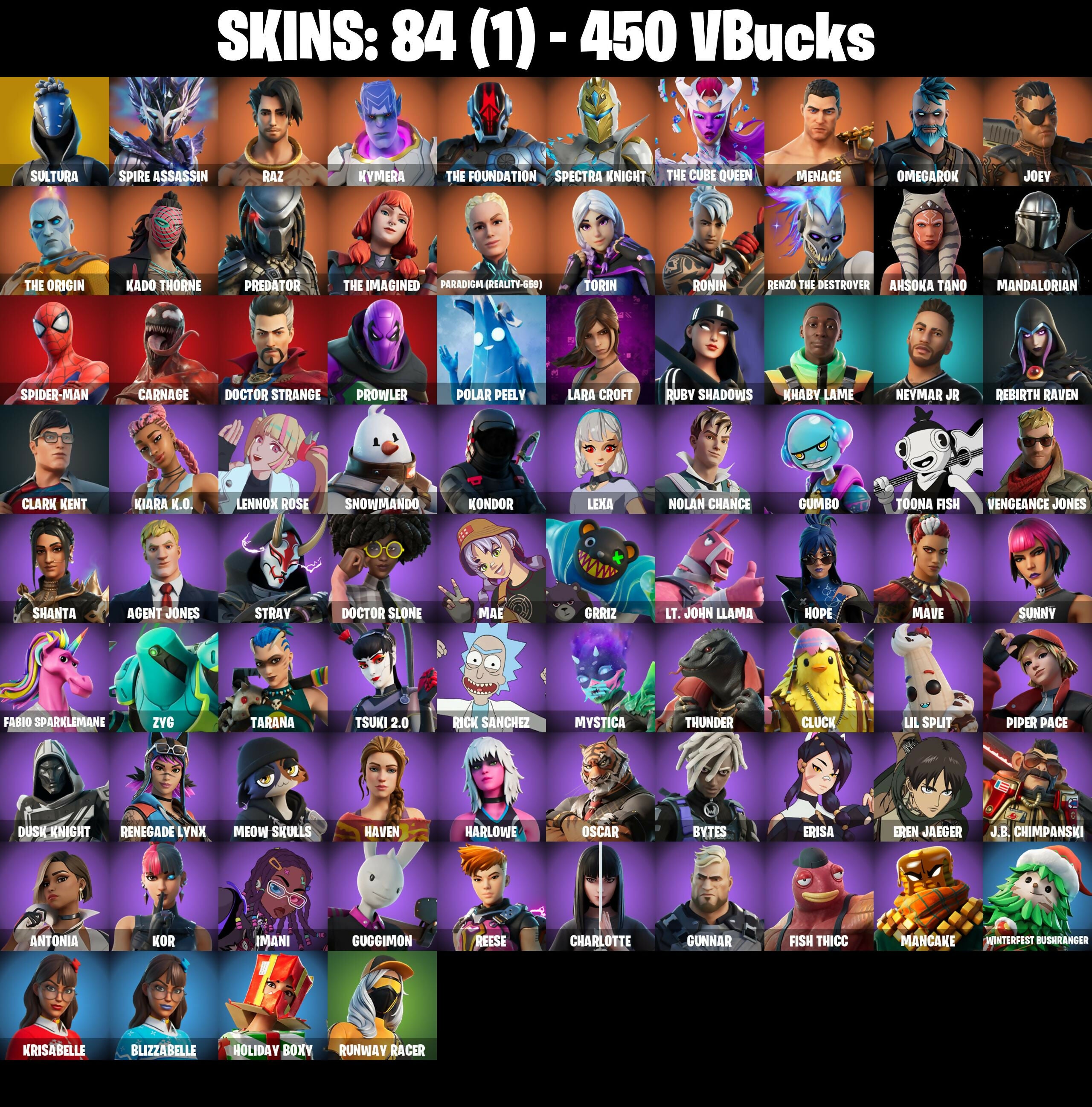PC/PSN/XBOX |84 skins | Lara Croft | Rage | Spider-Man | Menace | Spire Assassin | Rick Sanchez | Carnage | Doctor Strange | Kado Thorne | #B1016