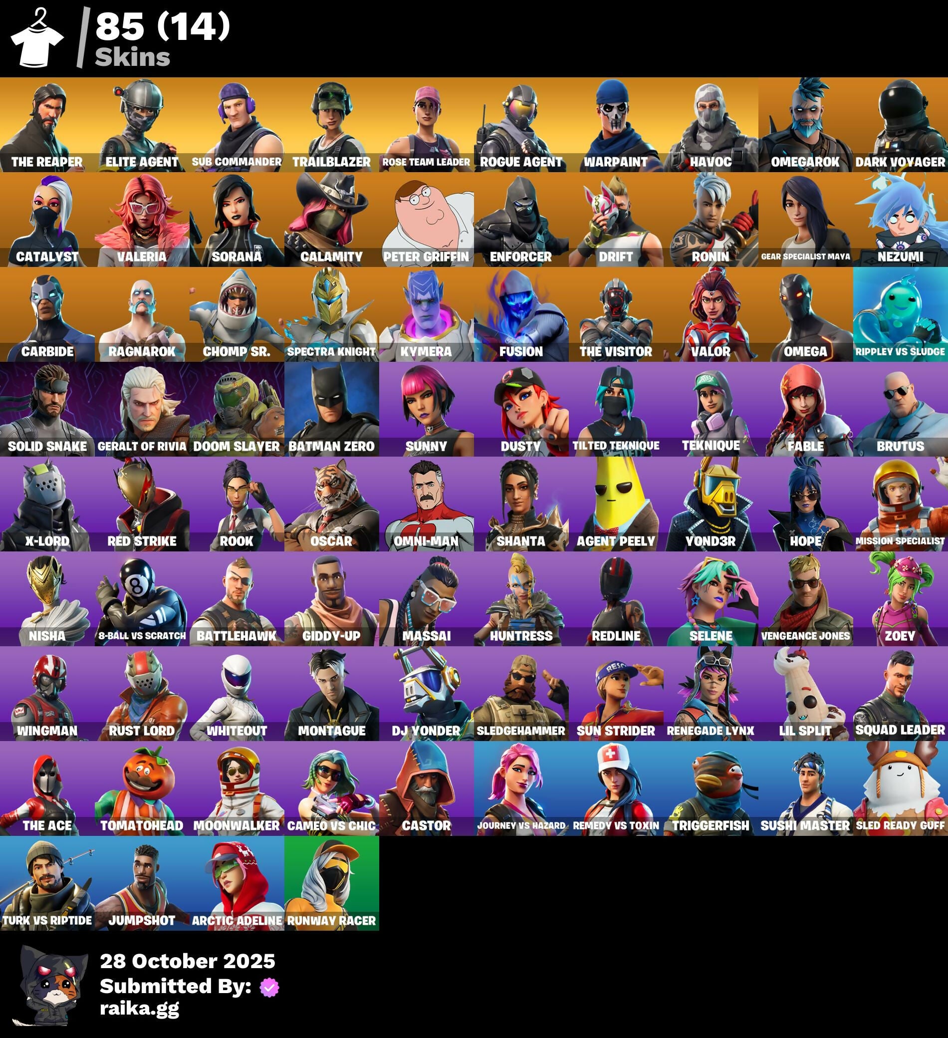 [PC/PSN/XBOX] 85 skins | OG STW | The Reaper | Elite Agent | Sub Commander | Trailblazer | Rogue Agent | Havoc | Omegarok | Dark Voyager | Catalyst | Valeria | 1850 VB