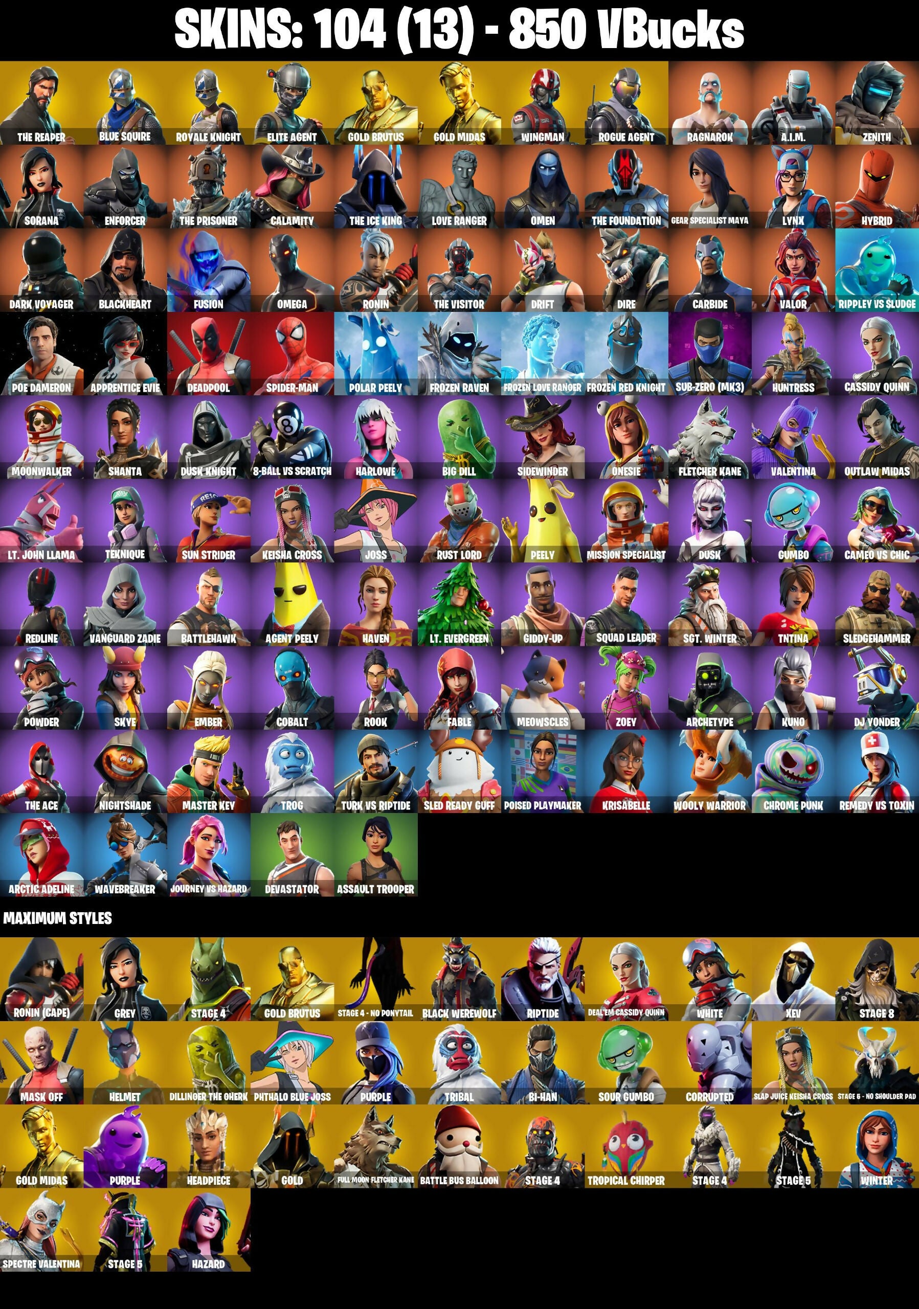 (PC/PSN/XBOX) 850 VB) 104 SKINS / The Reaper | Blue Squire | Royale Knight | Elite Agent | Gold Brutus | Gold Midas | Wingman | Rogue Agent /