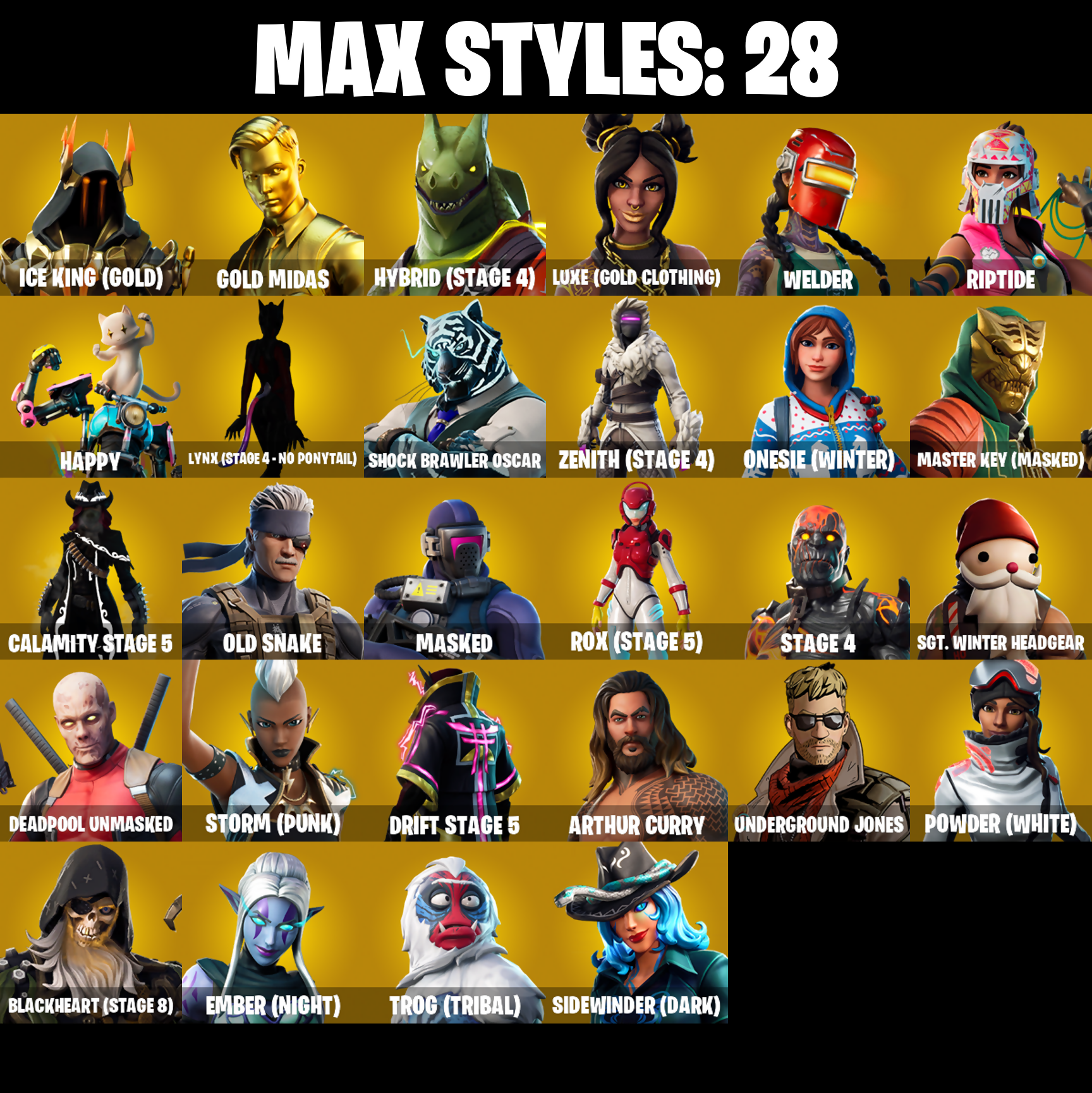 PC/PSN/XBOX |87 skins | Deadpool | Gold Midas | Orange Justice | Rogue Agent | Drift | The Ice King | Luxe | Peely | Lynx | Rook | Wolverine | #B1010