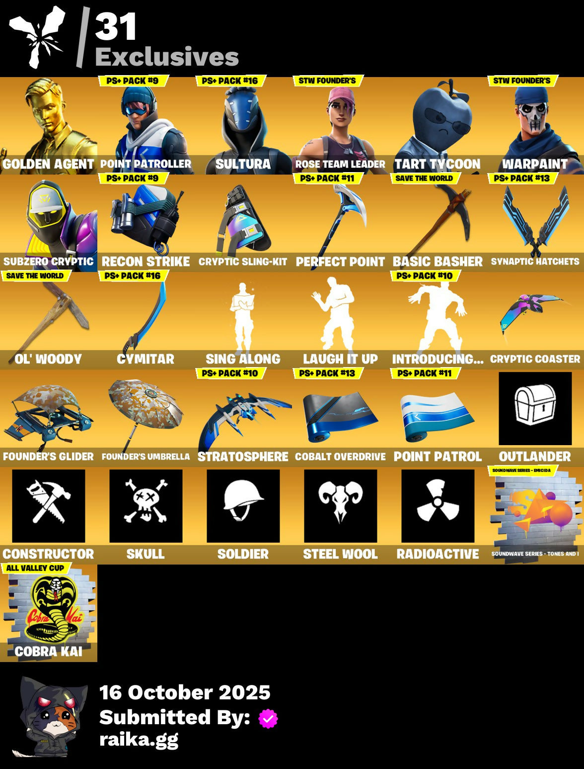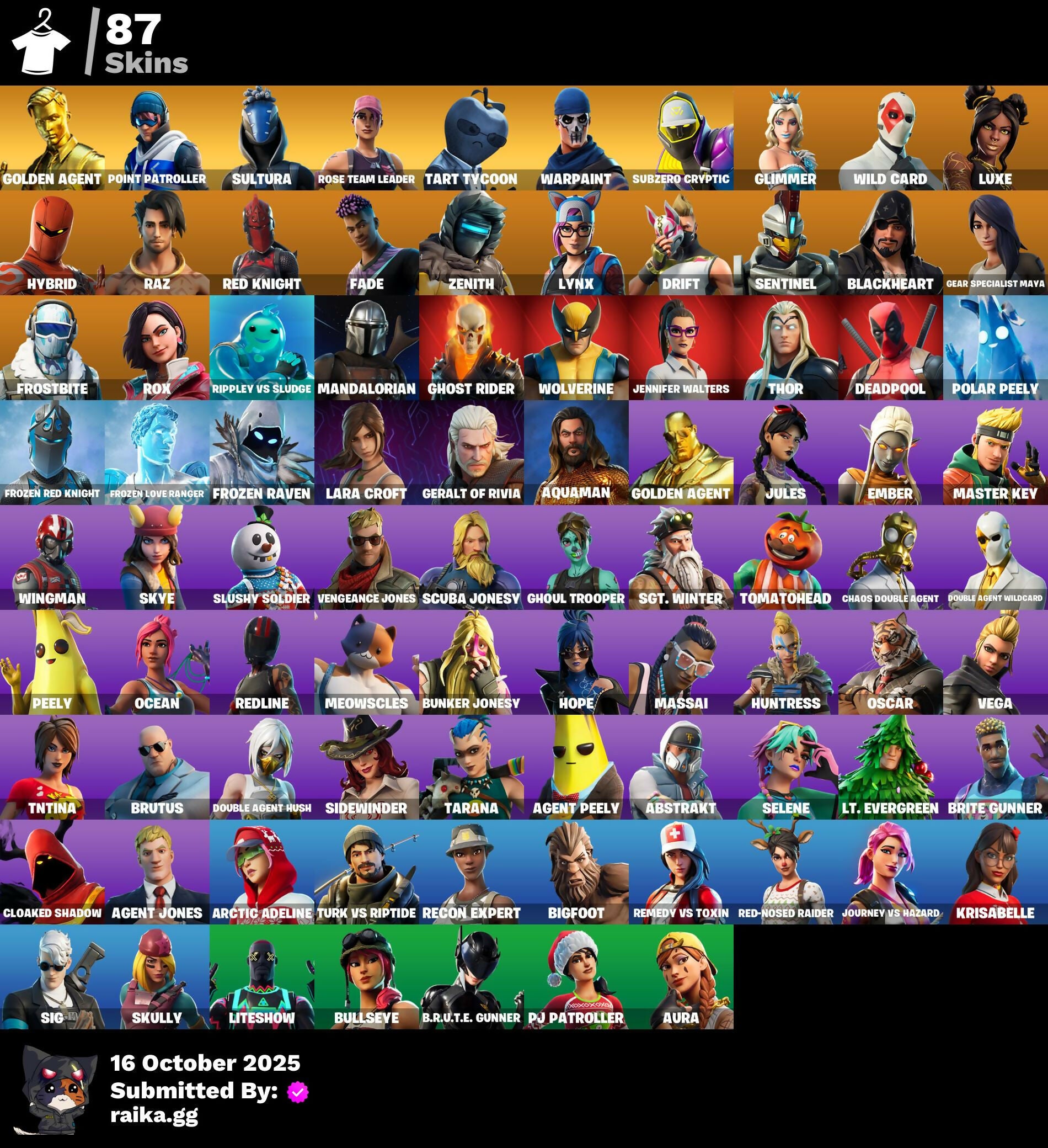 [PC/PSN/XBOX] 87 skins | OG STW | Lara Croft | GOLDEN AGENT | Point Patroller | Sultura | Tart Tycoon | Subzero Cryptic | Glimmer | Wild Card | Luxe | Hybrid | 350 VB / FN