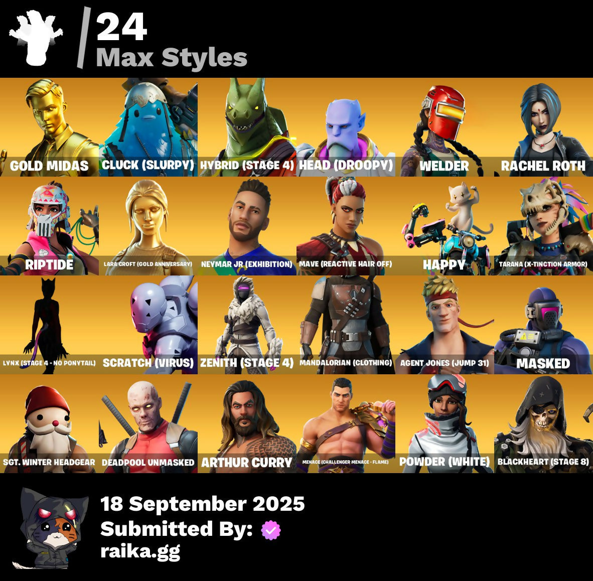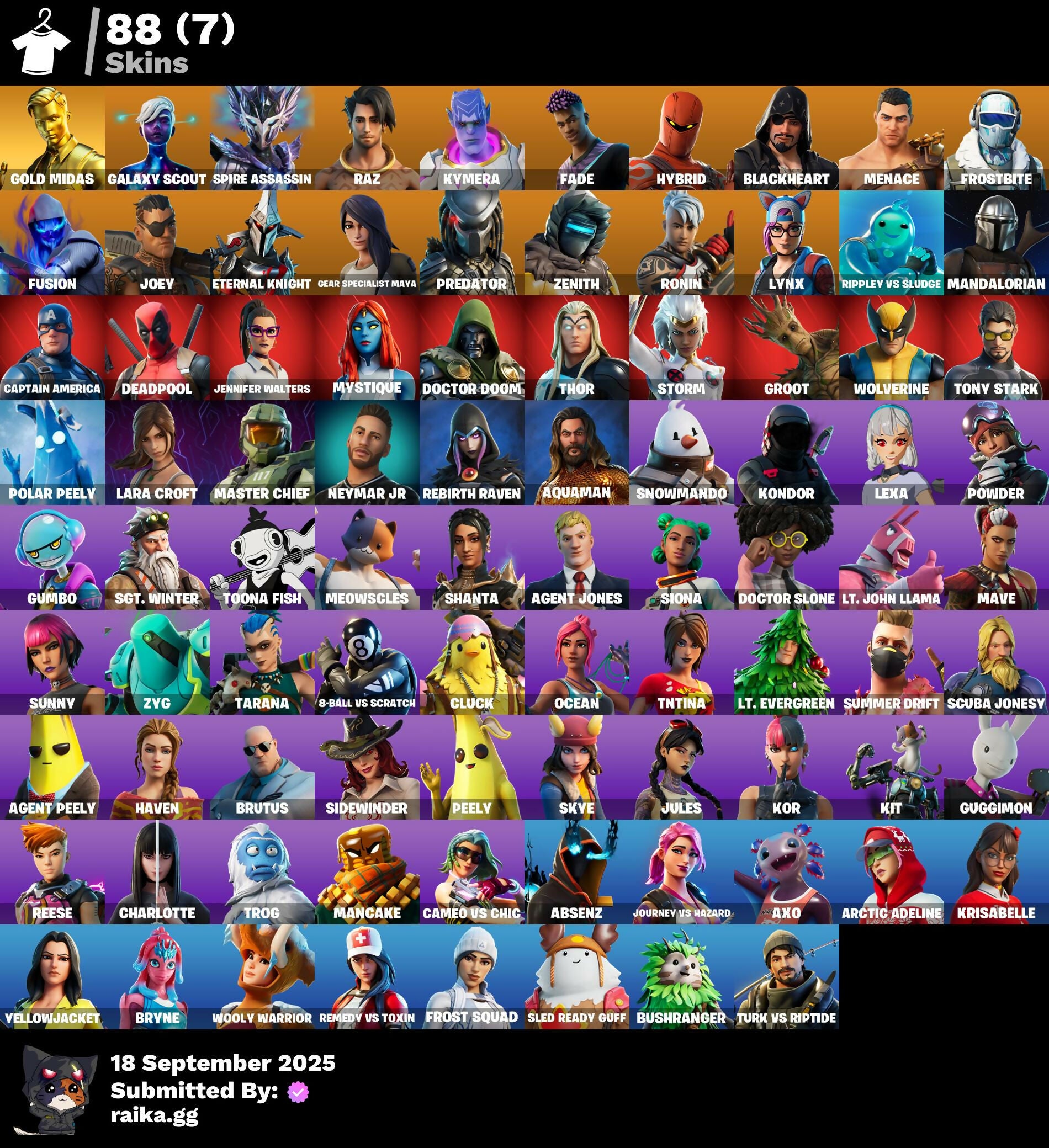 [PC/PSN/XBOX] 88 skins | Master Chief | Gold Midas | Galaxy Scout | Spire Assassin | Raz | Kymera | Fade | Hybrid | Blackheart | Menace | Frostbite | Fusion | 600 VB / FN