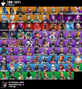 [PC/PSN/XBOX] 89 skins | Andromeda | FNCS 3:1 Champion | Malik | The Imagined | Omegarok | Paradigm (Reality-659) | The Origin | Ronin | The Foundation | 0 VB / FN