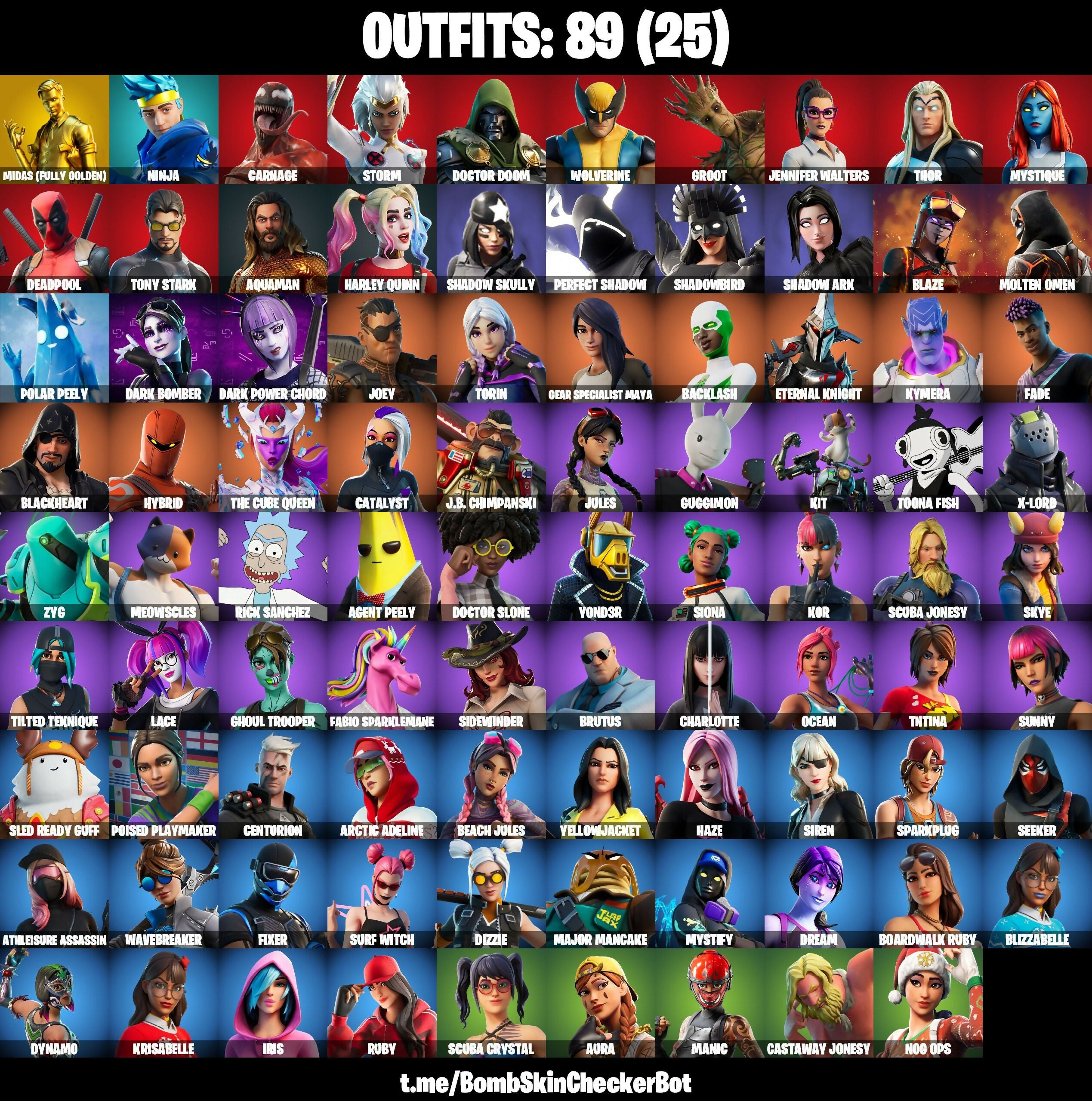 [PC/PSN/XBOX] 89 skins | Gold Midas | Go mufasa| Candy Axe| Laugh it up | Sing Along | Shadow Bird | Blaze | Harley Quinn | Dark Bomber | Ghoul Trooper 550 VB