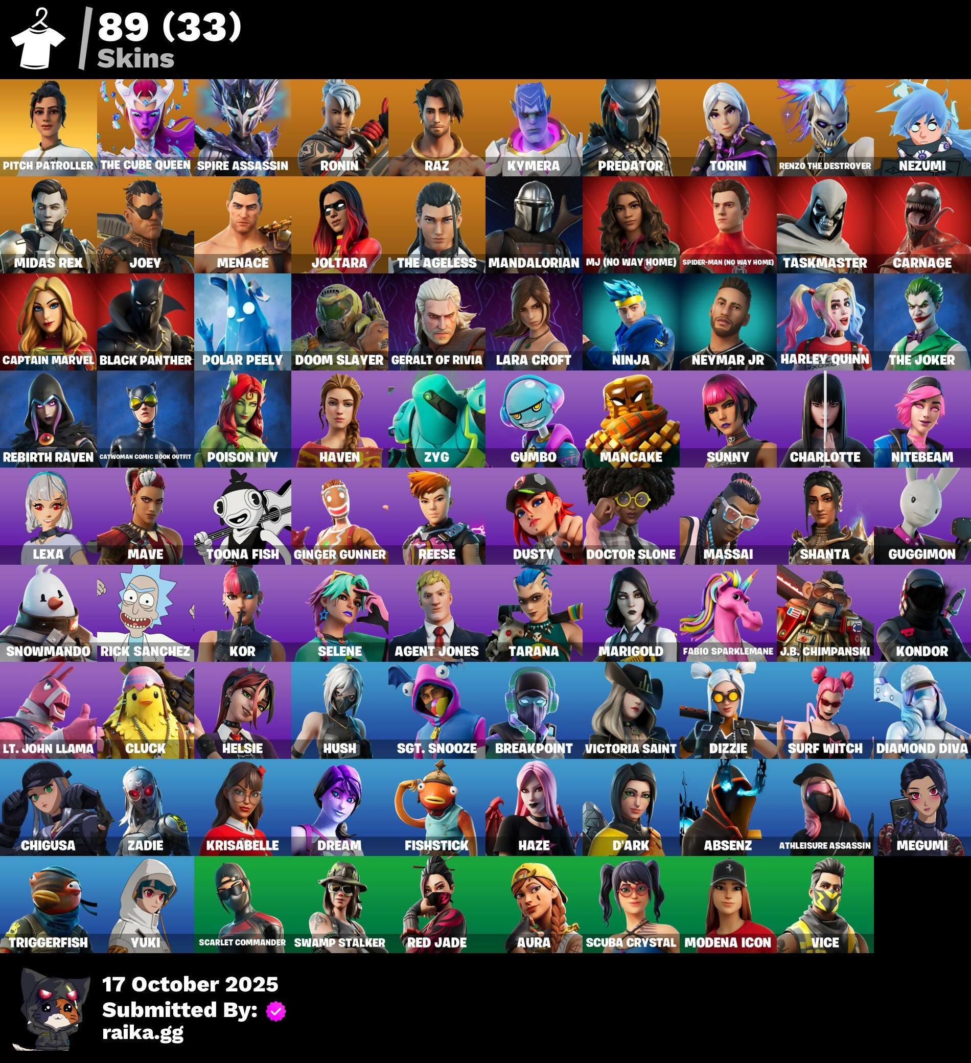 [PC/PSN/XBOX] 89 skins | Pitch Patroller | The Cube Queen | Spire Assassin | Ronin | Raz | Kymera | Predator | Torin | Renzo the Destroyer | Nezumi | 3700 VB / FN