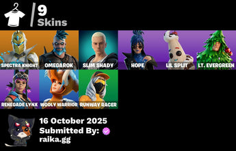 [PC/PSN/XBOX] 9 skins | Spectra Knight | Omegarok | Slim Shady | Hope | Lil Split | Lt. Evergreen | Renegade Lynx | Wooly Warrior | Runway Racer | 400 VB / FN