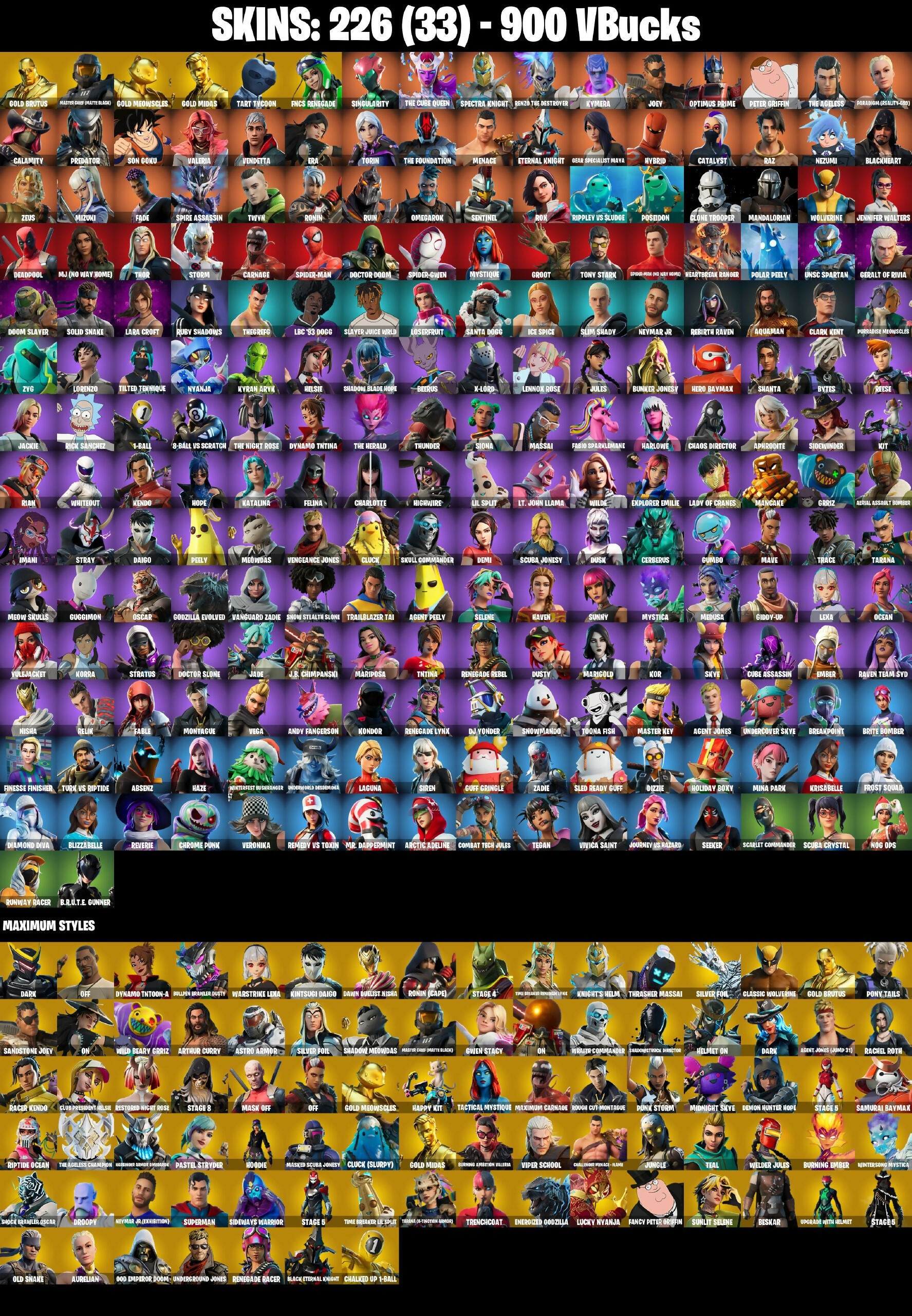 (PC/PSN/XBOX) 900 VB) 226 SKINS / Gold Brutus | Master Chief (Matte Black) | Gold Meowscles | Gold Midas | Tart Tycoon | FNCS Renegade /