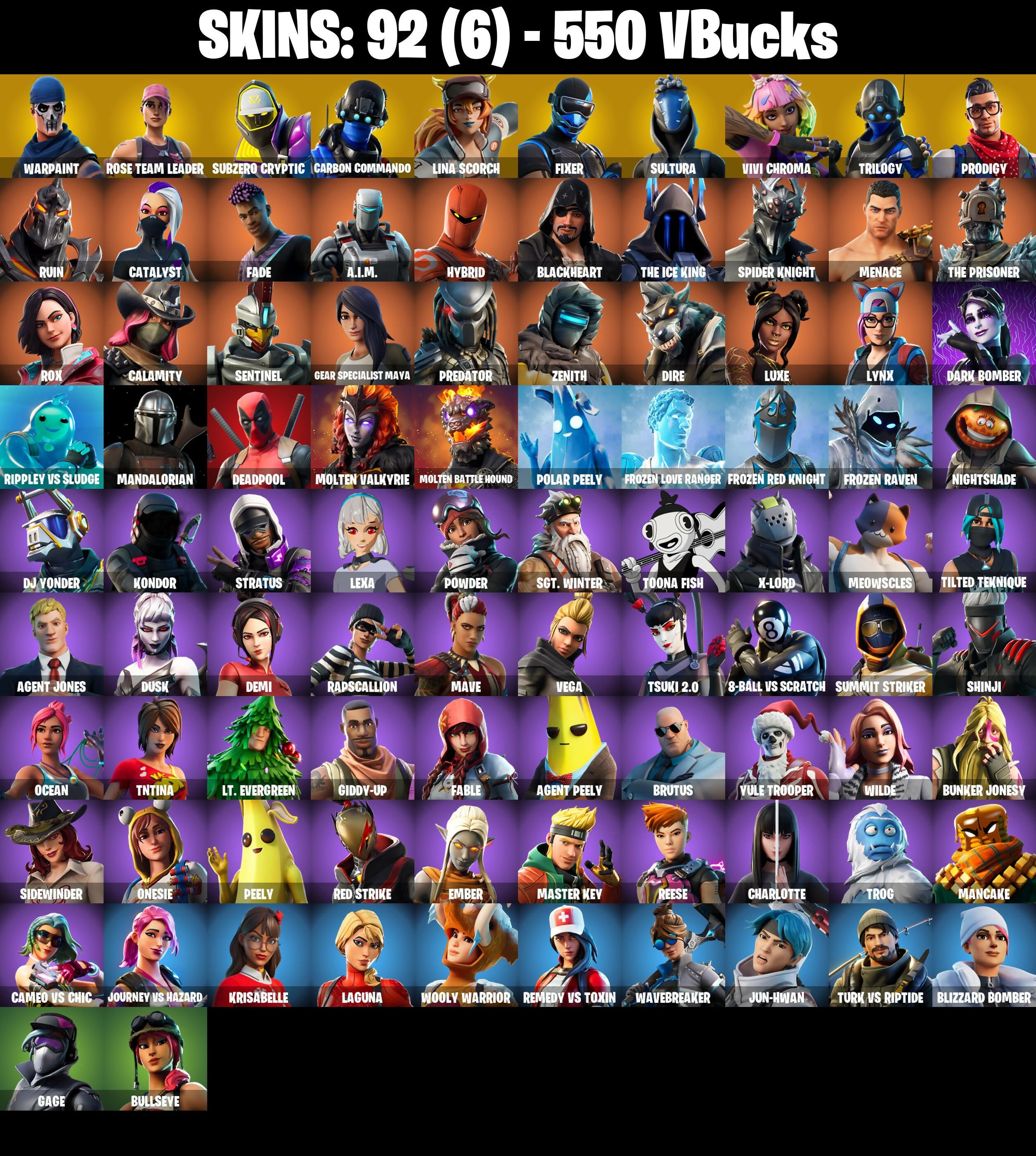 PC/PSN/XBOX |92 skins | OG STW | Deadpool | Dire | The Ice King | Luxe | Peely | Menace | Ride The Pony | Lynx | Pull Up | Wavebreaker | #B1077