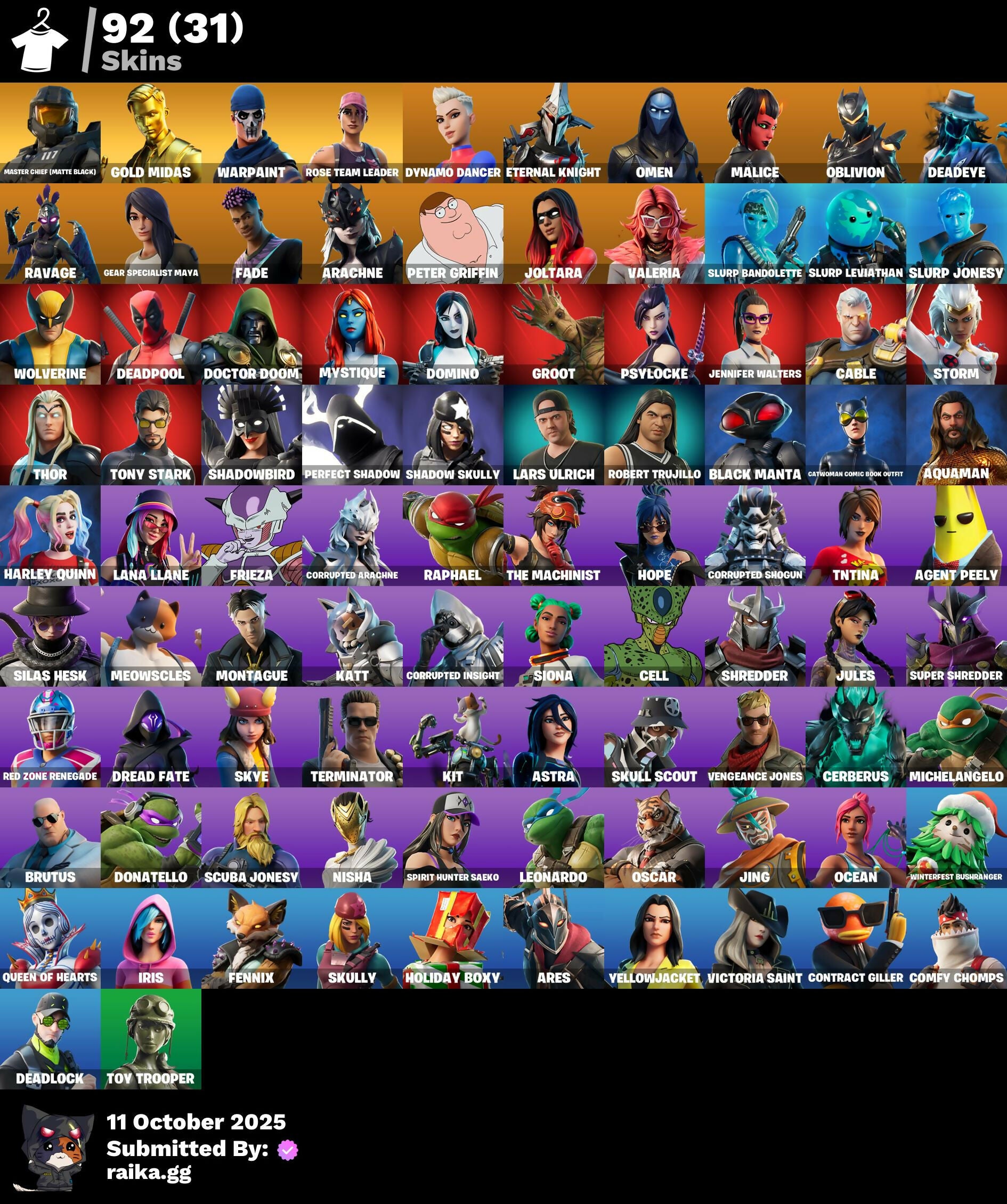 [PC/PSN/XBOX] 92 skins | OG STW | Master Chief (Matte Black) | Gold Midas | Dynamo Dancer | Eternal Knight | Omen | Malice | Oblivion | Deadeye | Ravage | 300 VB