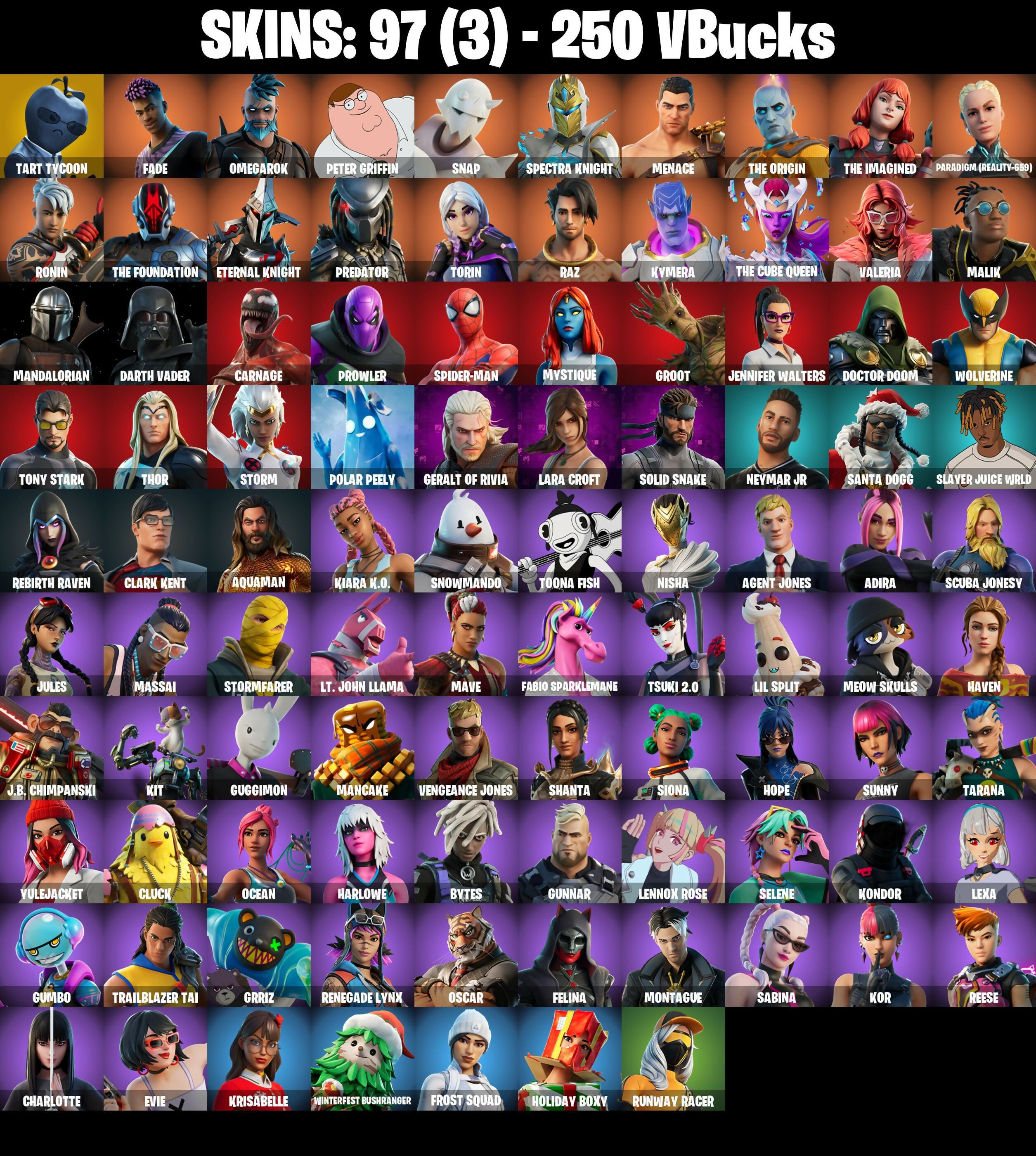 PC/PSN/XBOX |97 skins | Lara Croft | Rage | Spider-Man | Eternal Knight | Tony Stark | Menace | Carnage | Darth Vader | Wolverine | #B997