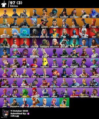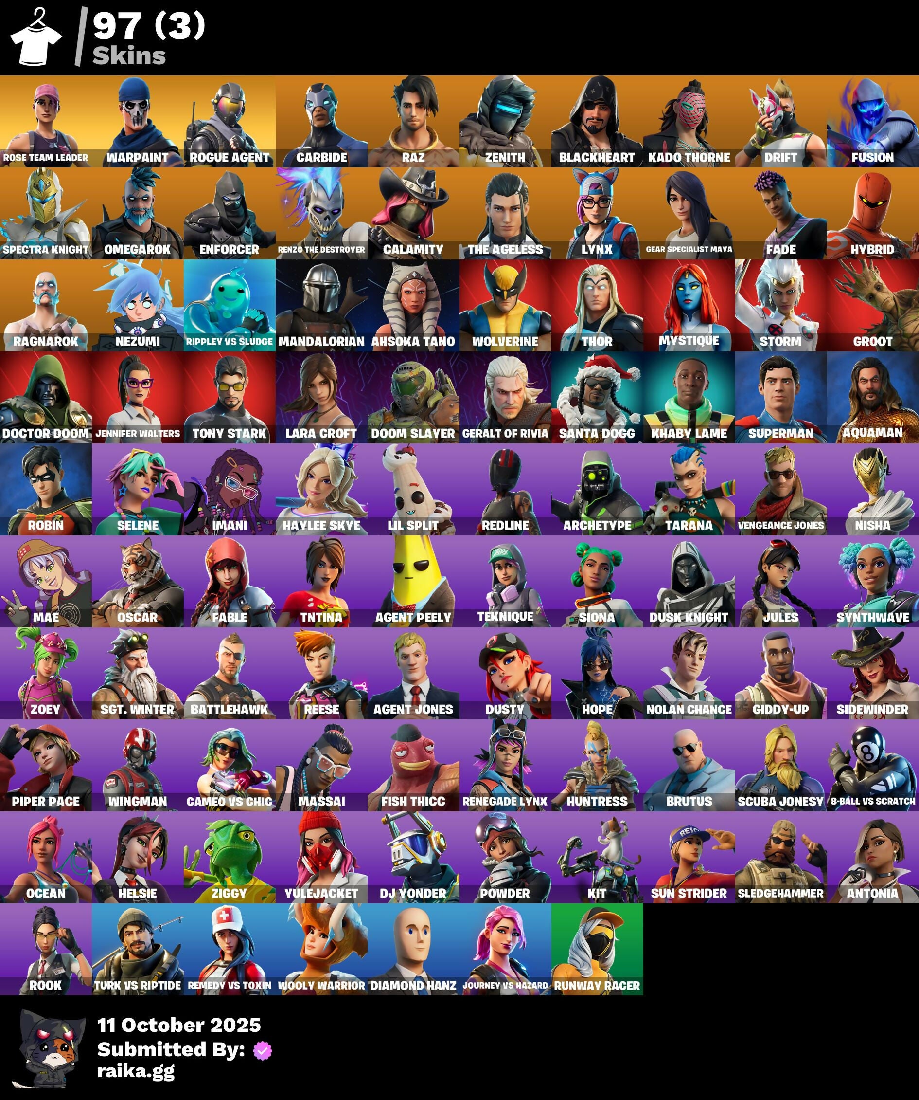 [PC/PSN/XBOX] 97 skins | OG STW | Rogue Agent | Carbide | Raz | Zenith | Blackheart | Kado Thorne | Drift | Fusion | Spectra Knight | Omegarok | Enforcer | 1350 VB