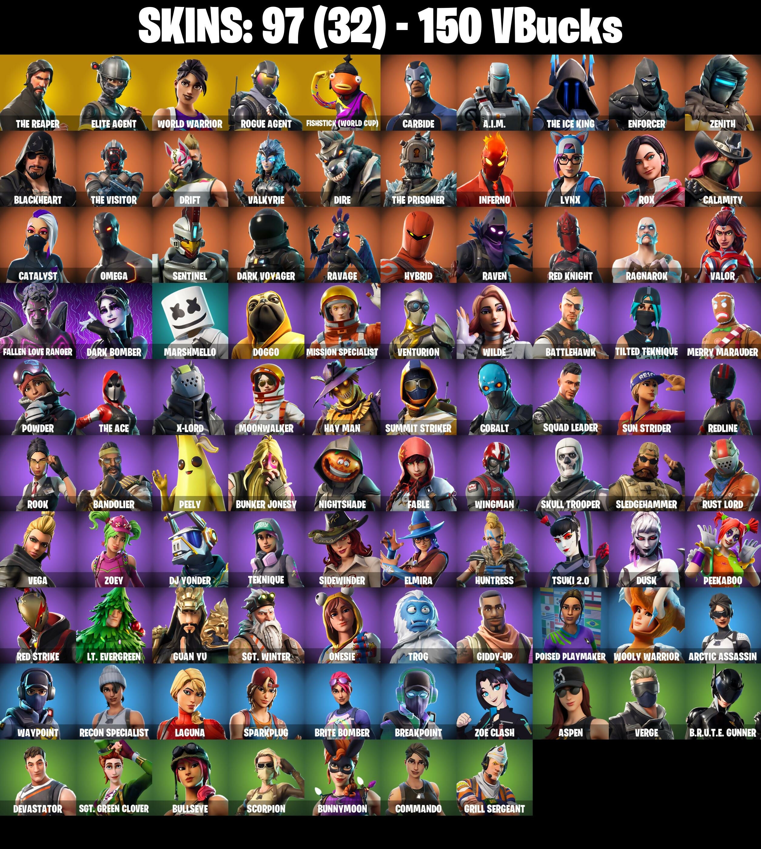 PC/PSN/XBOX |97 skins | Reaper | The Reaper | Elite Agent | Omega | Take The L | World Warrior | Orange Justice | Tidy | Dark Voyager | #B919