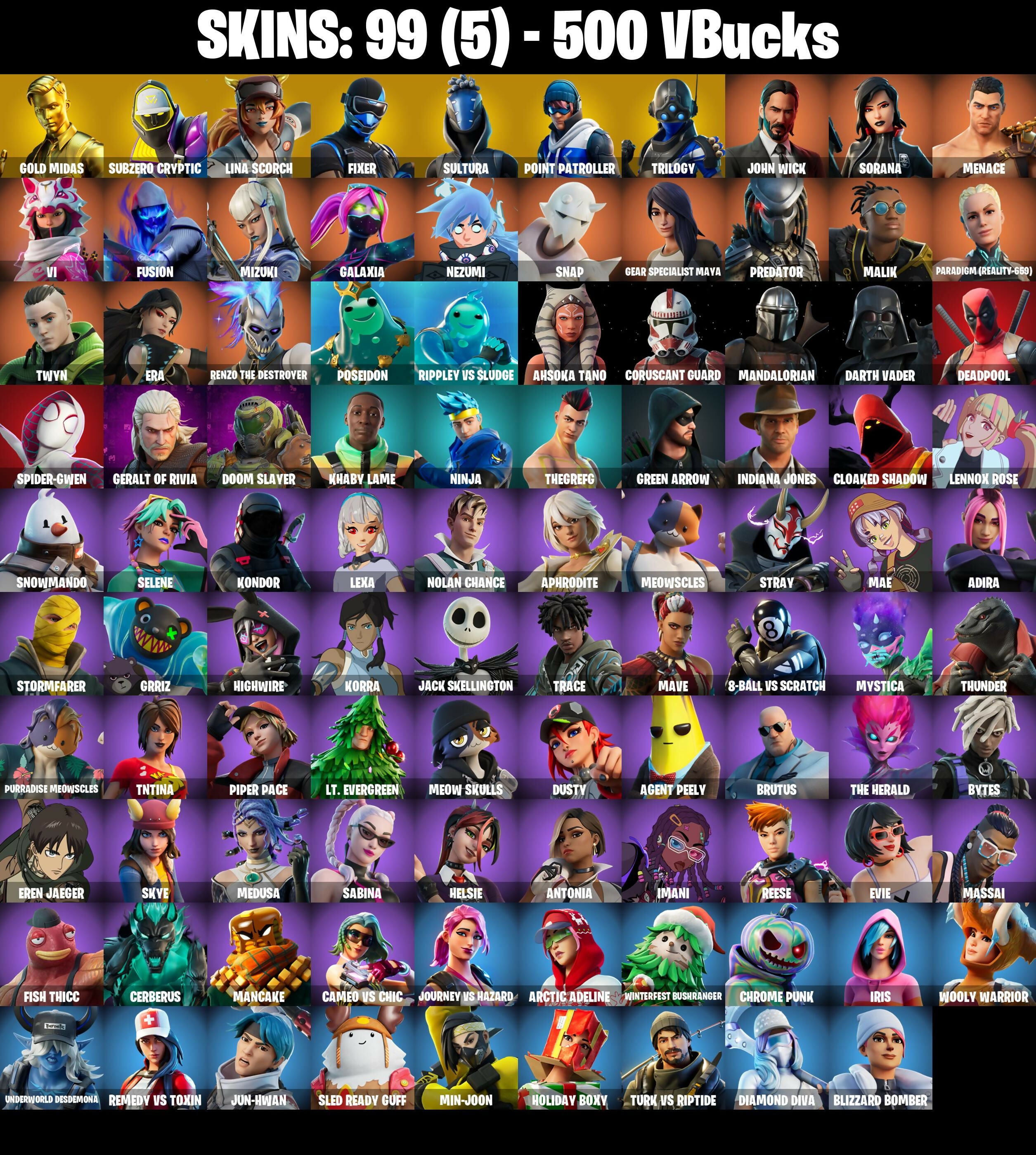 PC/PSN/XBOX |99 skins | Deadpool | Gold Midas | Galaxia | Spider-Gwen | Rage | Fusion | Menace | Darth Vader | Mizuki | Sing Along | #B1074