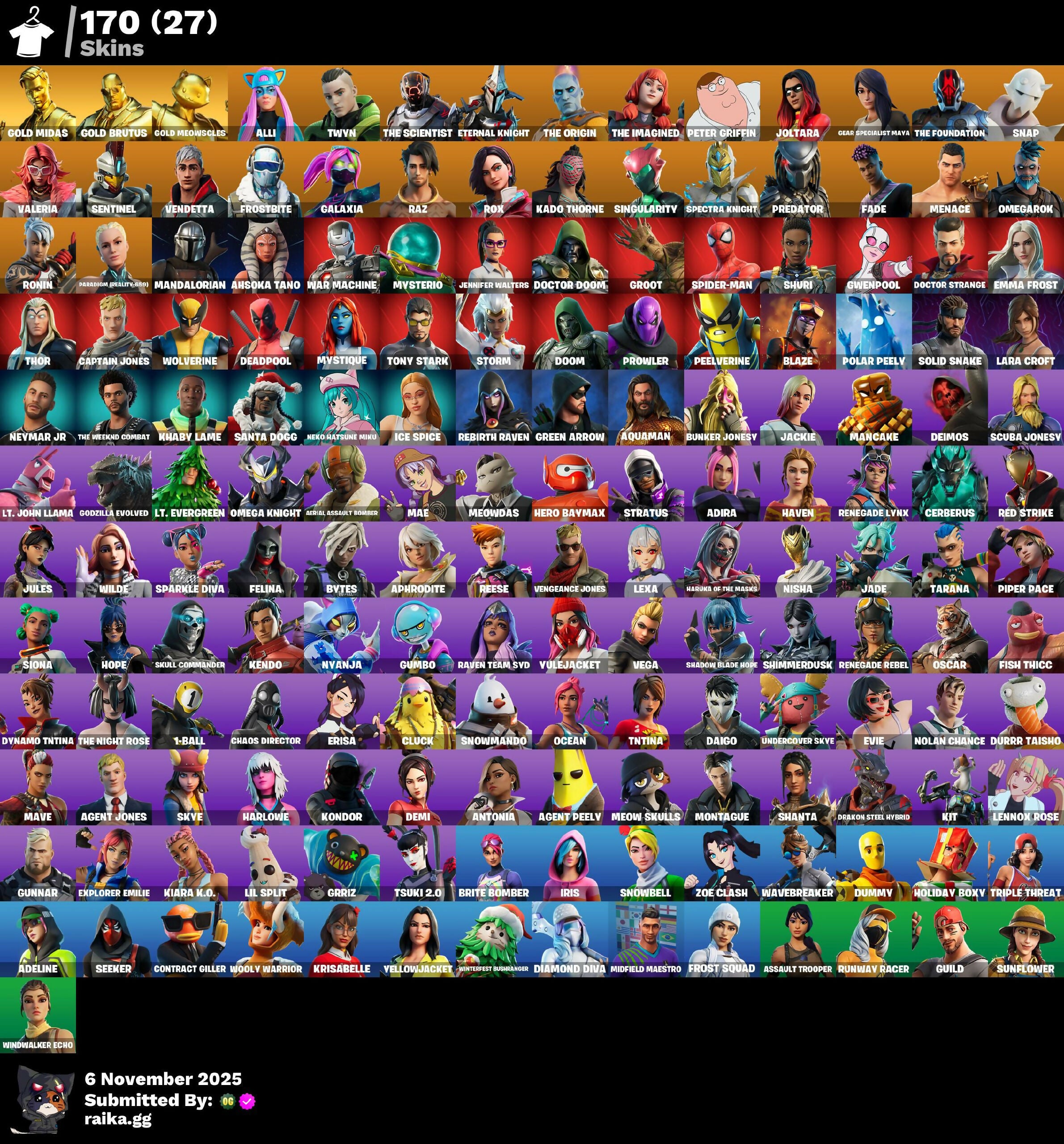 [PC/PSN/XBOX/NITTENDO] 170 skins | Gold Midas | Gold Brutus | Gold Meowscles | Alli | Twyn | The Scientist | Eternal Knight | The Origin | The Imagined | 1950 VB