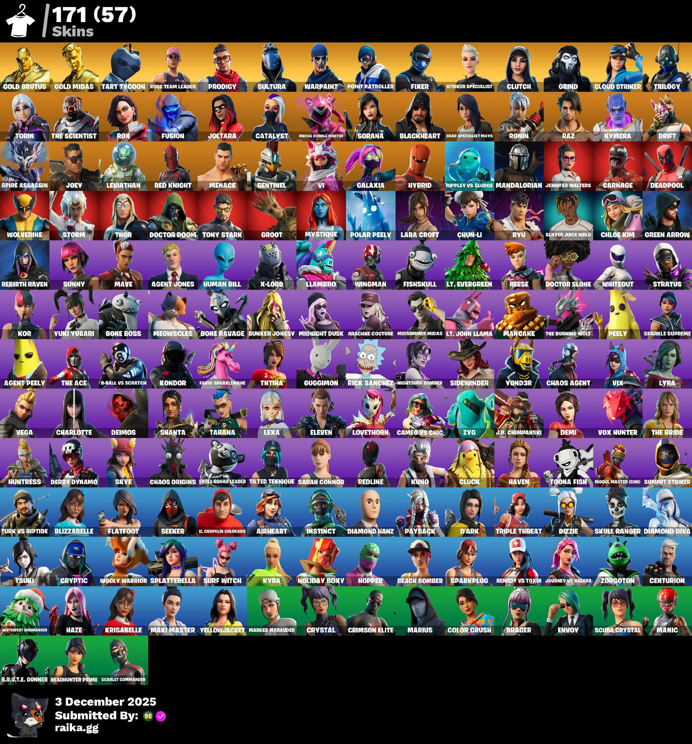 [PC/PSN/XBOX/NITTENDO] 171 skins | OG STW | Gold Brutus | Gold Midas | Tart Tycoon | Prodigy | Sultura | Point Patroller | Fixer | Striker Specialist | Clutch | Grind | 50 VB