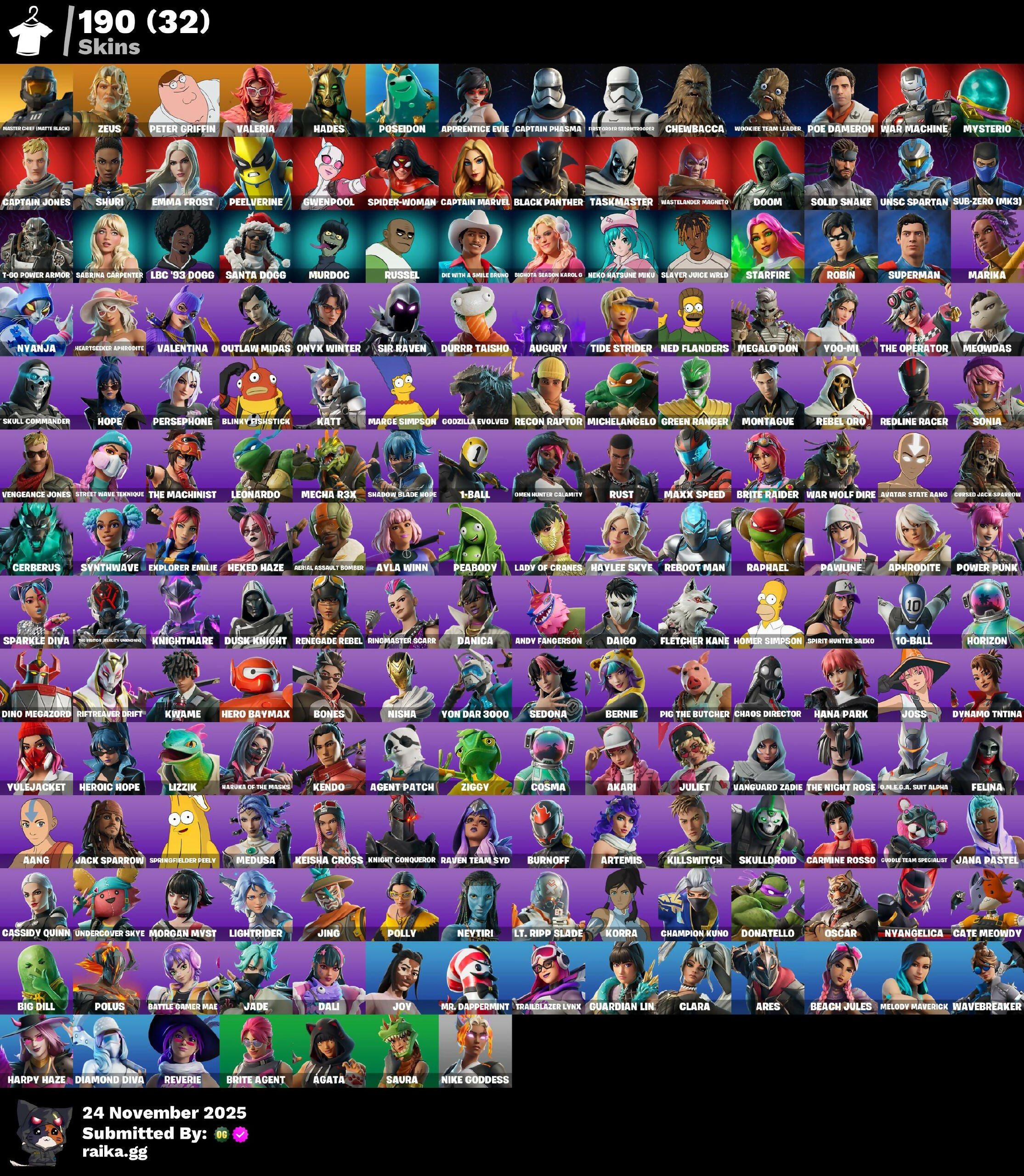 [PC/PSN/XBOX/NITTENDO] 190 skins Master Chief (Matte Black) | Zeus | Peter Griffin | Valeria | Hades | Poseidon | Apprentice Evie | Captain Phasma | 500 VB