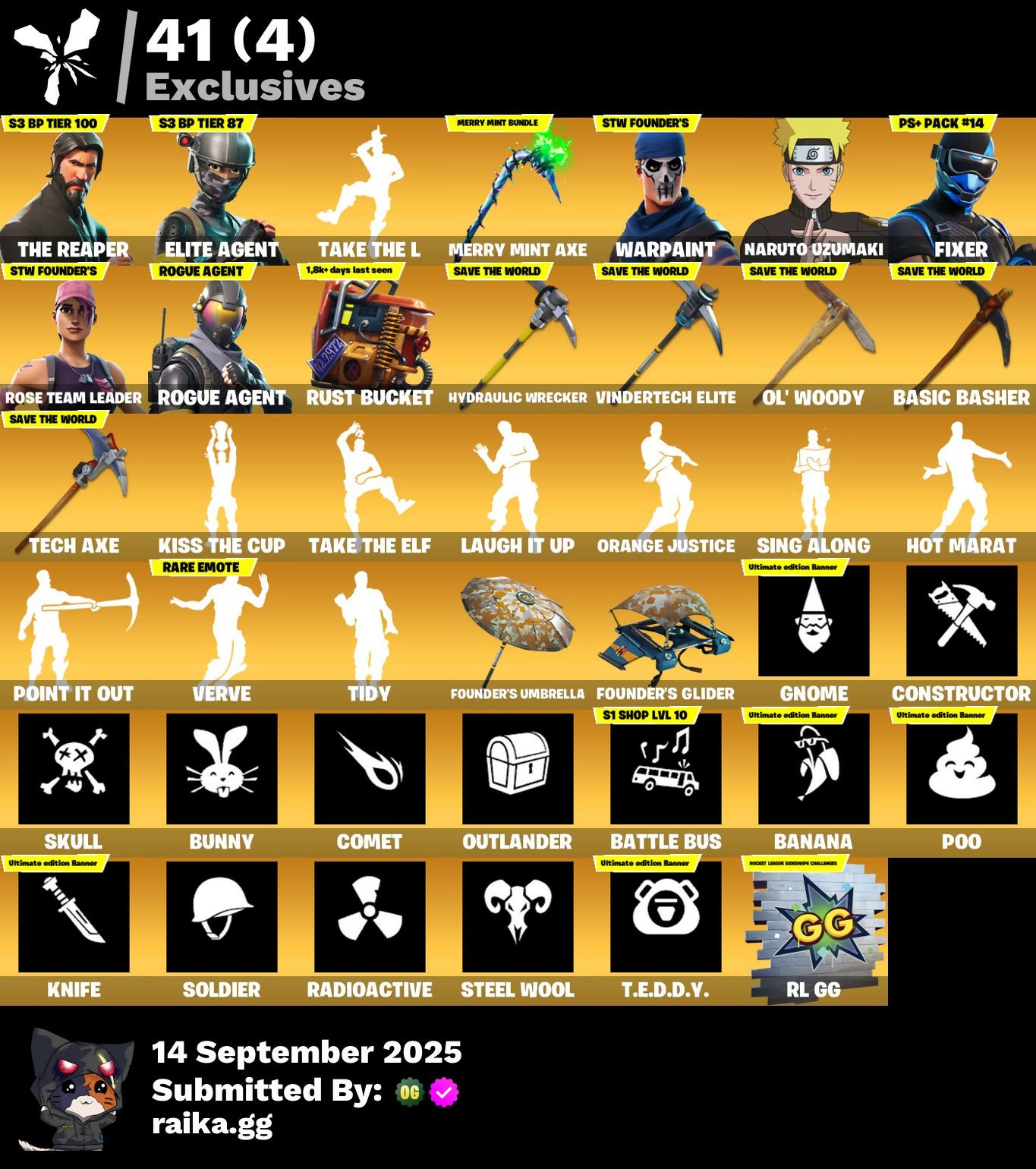 [PC/PSN/XBOX/NITTENDO] 206 skins | OG STW | The Reaper | Elite Agent | Naruto Uzumaki | Fixer | Rogue Agent | Valor | The Ice King | Omegarok | Dire | Spectra Knight | 230 VB